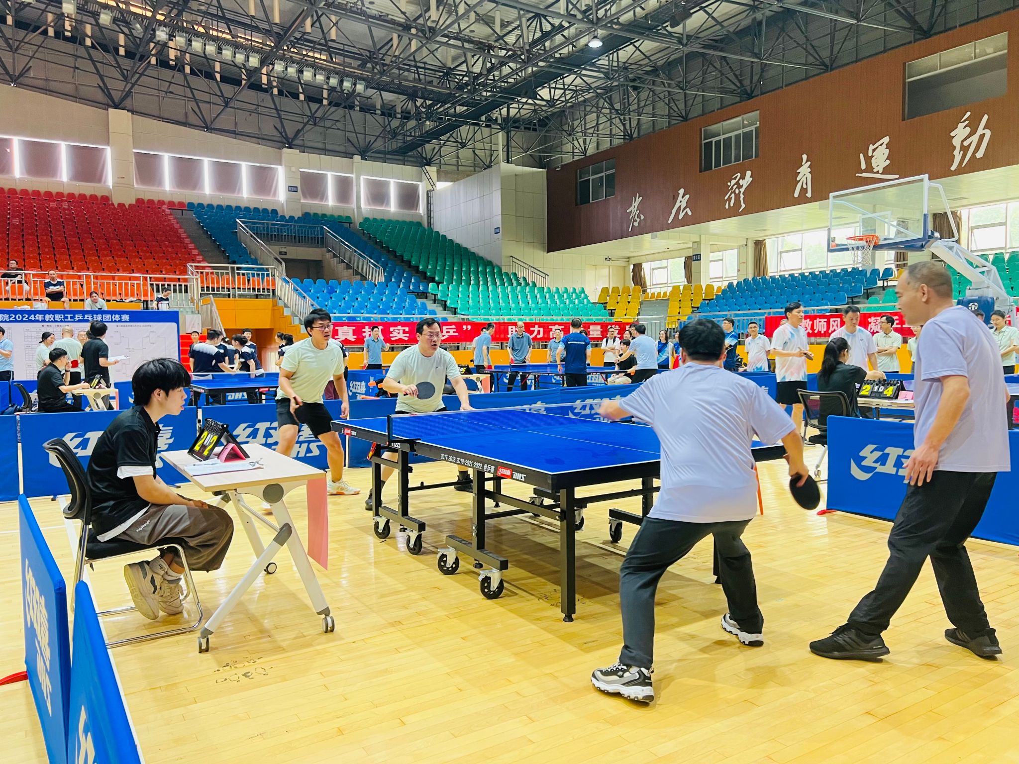 (本网讯)为丰富教职工文化生活,提升教职工队伍身体素质,培养健康向上的生活方式,4月27日上午,由校工会主办、体育学院协办的2024年教职工乒乓球团体赛在主校区体育馆举行。我分工会组织教职工积极参与,参赛选手发挥各自所长,积极投入其中。