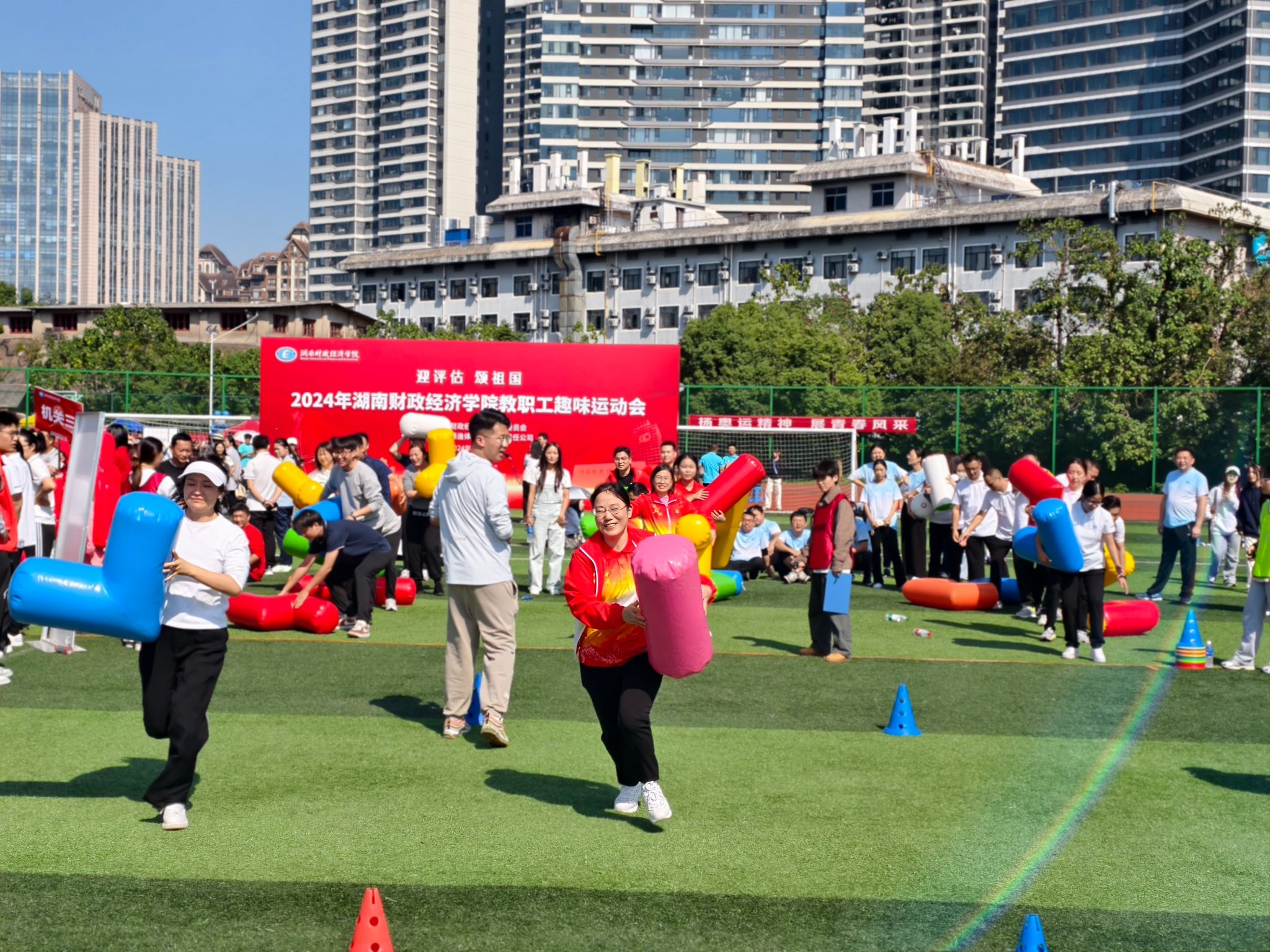 (本网讯)秋风送爽,阳光明媚,金桂飘香。为丰富教职工文体生活,提高教职工的身体素质和生活幸福感,10月25日,由学校工会主办的“迎评估 颂祖国”2024年教职工趣味运动会在主校区田径场举行。本次教职工趣味运动会以团体项目为主,全校共有18支队伍同台竞技。
