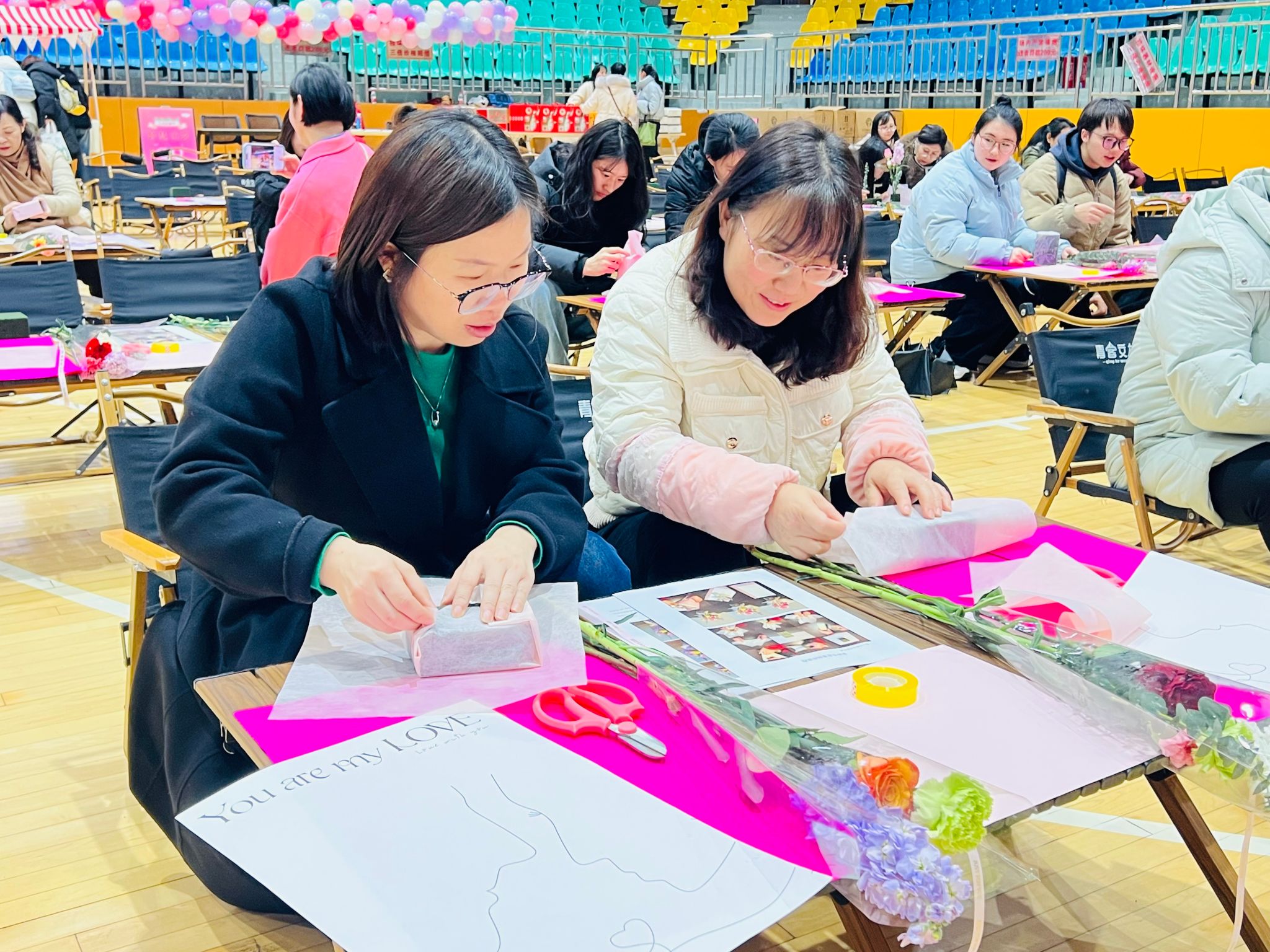 活动现场花香四溢,工作人员提前准备好花材和剪刀,大家充分发挥想象力和创作力,一边交流插花心得,一边拍照留念,记录下这美好的瞬间。在欢声笑语的气氛里,完成了一个个别出心裁的花艺作品。