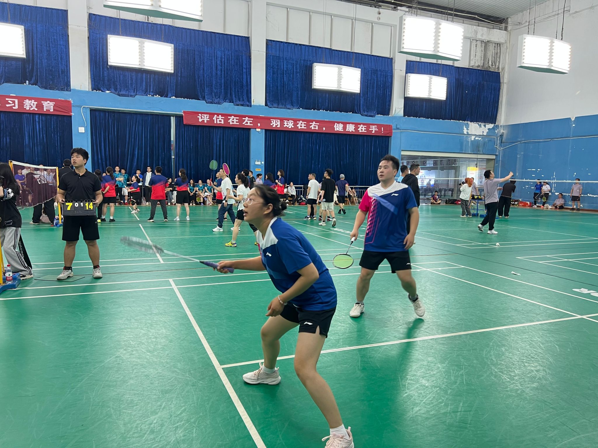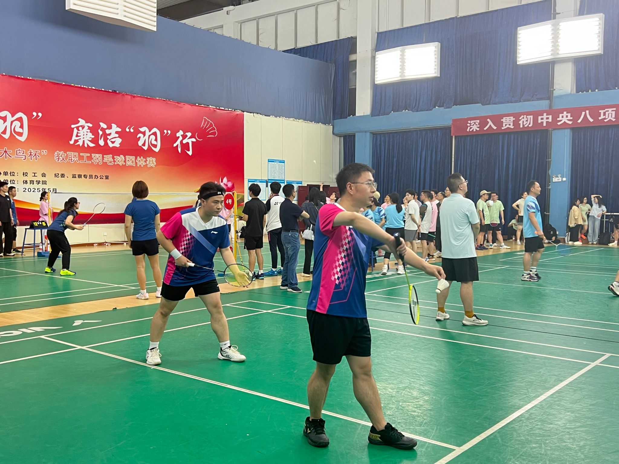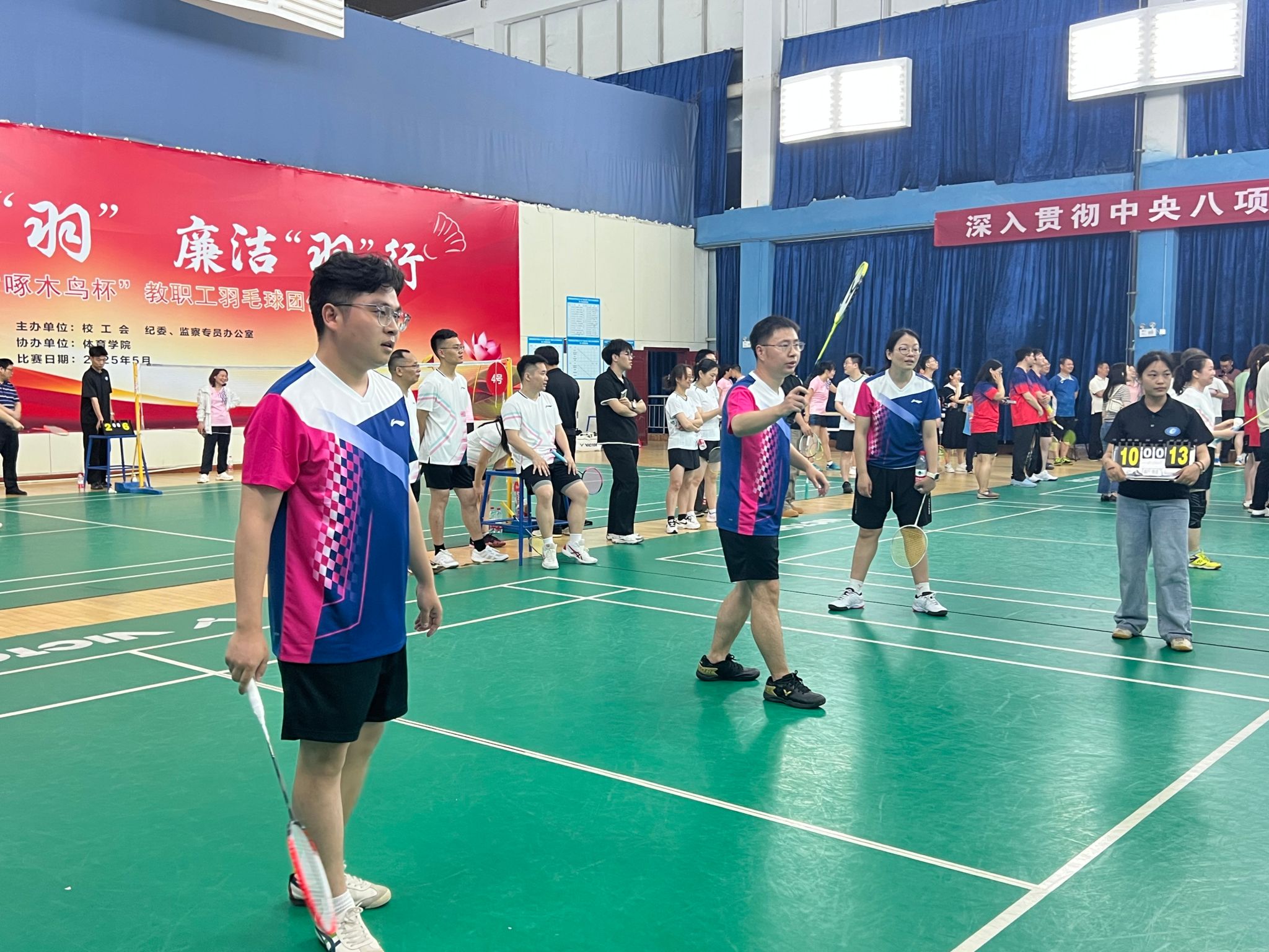 (本网讯)5月7日晚,2025年beat365中文在线官网“啄木鸟杯”教职工羽毛球团体赛正式开启。本次活动由校工会和纪委、监察专员办公室主办,体育学院承办,旨在加强教职工之间的合作、交流与互动,共享快乐,健心强体,营造风清气正、健康向上的工作氛围。我院分工会积极组织与筹备,组建了一支充满活力和干劲的队伍,共同为团队的荣誉而拼搏。