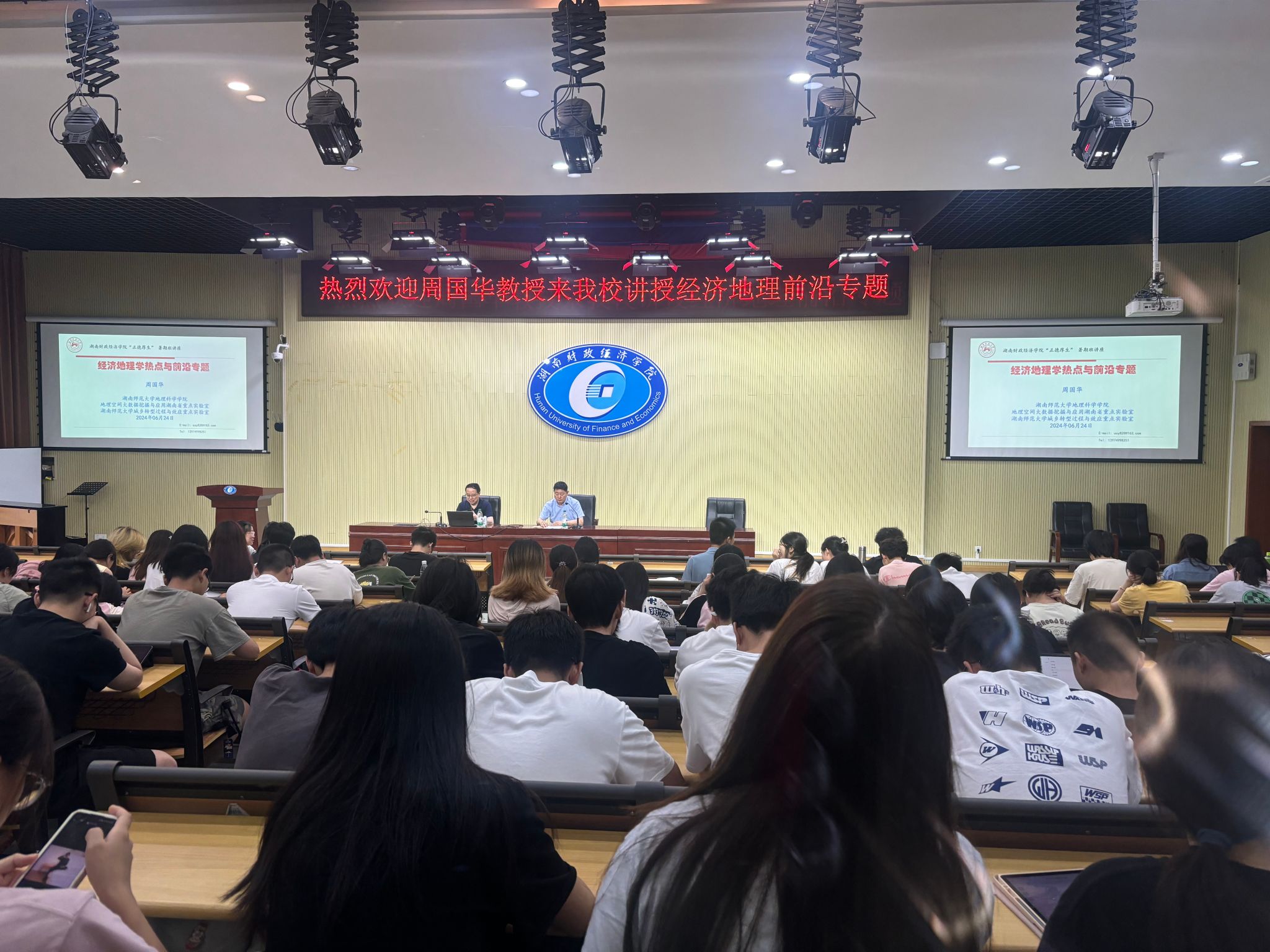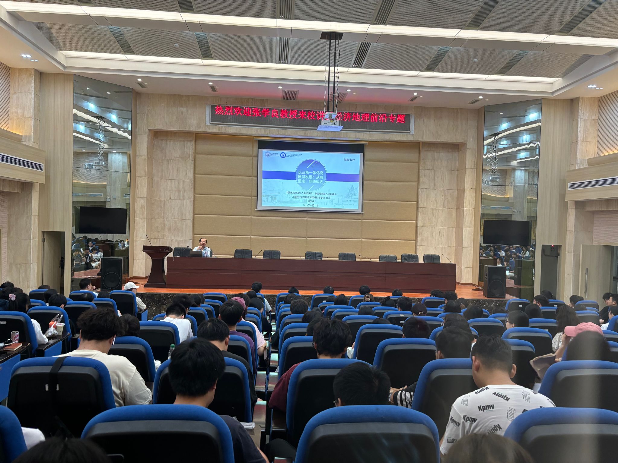(本网讯)6月22至25日,经济地理学院举办2024年暑期课程名家讲学活动,邀请全国政协常委樊杰教授、上海财经大学城市与区域科学学院院长张学良教授、湖南师范大学地理科学学院院长周国华教授以及南京师范大学地理科学学院院长黄昌春教授讲授《经济地理前沿专题》课程。活动分别由经济地理学院院长彭文斌、副院长苏昌贵主持,经济地理学院200余名师生代表积极参与。