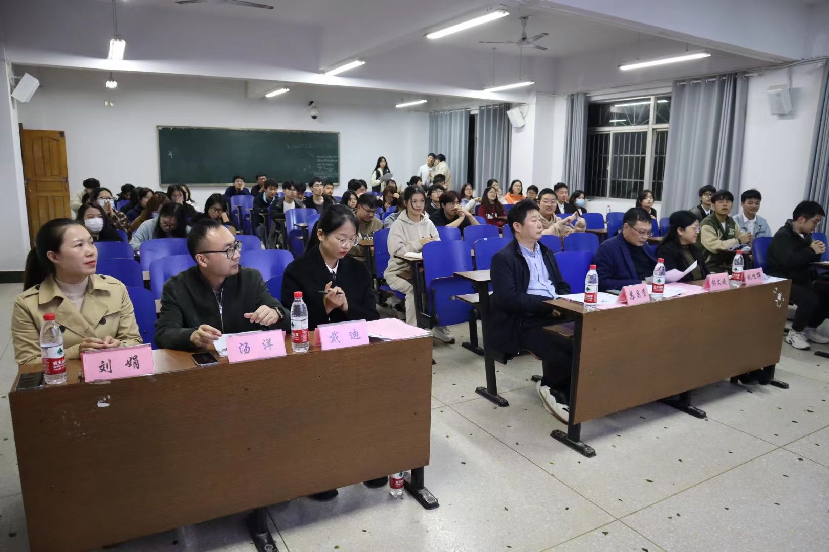 (本网讯)11月28日晚,经济地理学院首届全国大学生职业规划大赛(院赛)在主校区第三教学楼3103教室成功举办。学院院长彭文斌,院直属党支部书记姚旭辉出席本次大赛并讲话,副院长苏昌贵、学工办主任刘娟、各教研室主任及部分专业老师担任比赛评委。