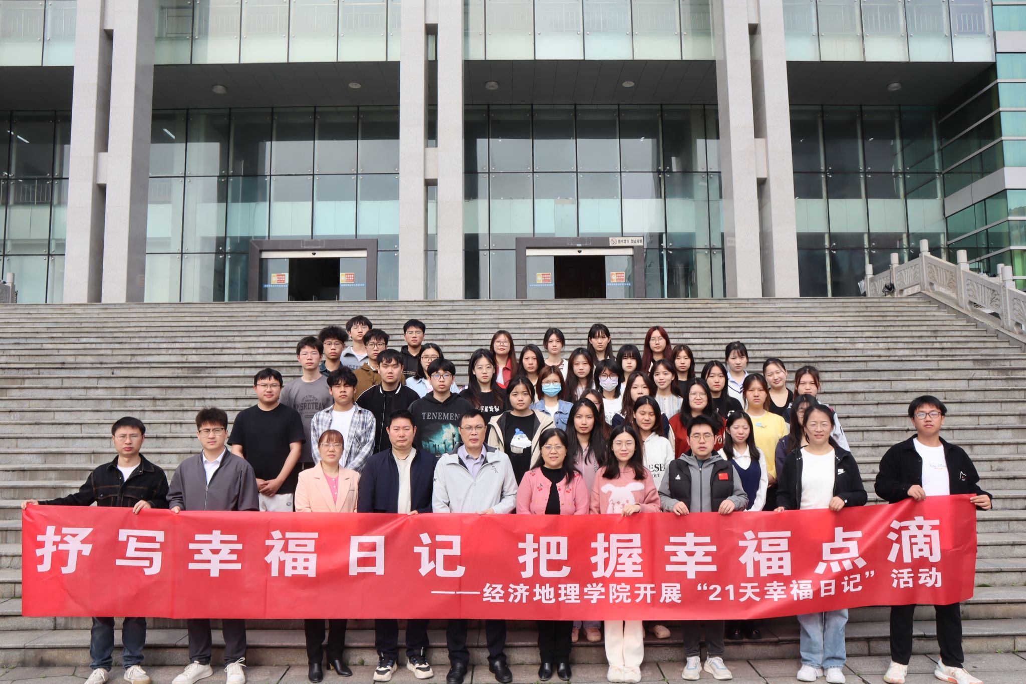 (本网讯)为营造浓厚心育氛围,引导学生以积极的态度面对生活,筑牢心理健康“防护墙”,3月14日至4月3日,经济地理学院团学会心理健康部精心策划,以“书写幸福日记,把握幸福点滴”为主题开展了为期21天的心理健康护航活动。活动开展以来深受广大同学欢迎和喜爱,学院院长彭文斌、直属党支部书记姚旭辉、副院长苏昌贵、骨干教师代表和120余名学生积极参与其中。