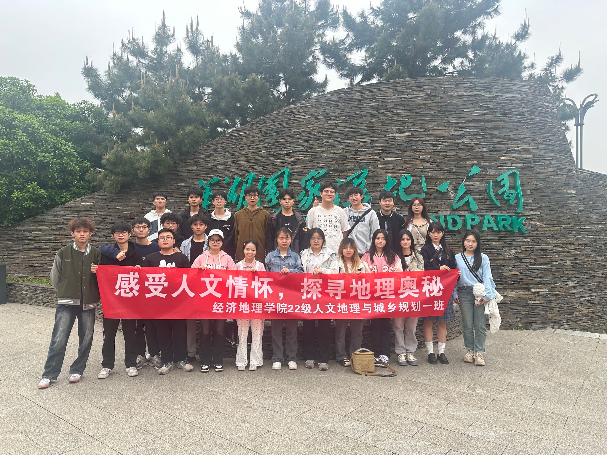 (本网讯)为进一步加强实践教育,丰富课余生活,4月10日下午,经济地理学院22级人文地理与城乡规划一班20余名学生前往洋湖国家湿地公园开展“感受人文情怀,探索地理奥秘”踏青研学活动。活动以小组形式分为踏青摄影和实践研学两个环节进行。