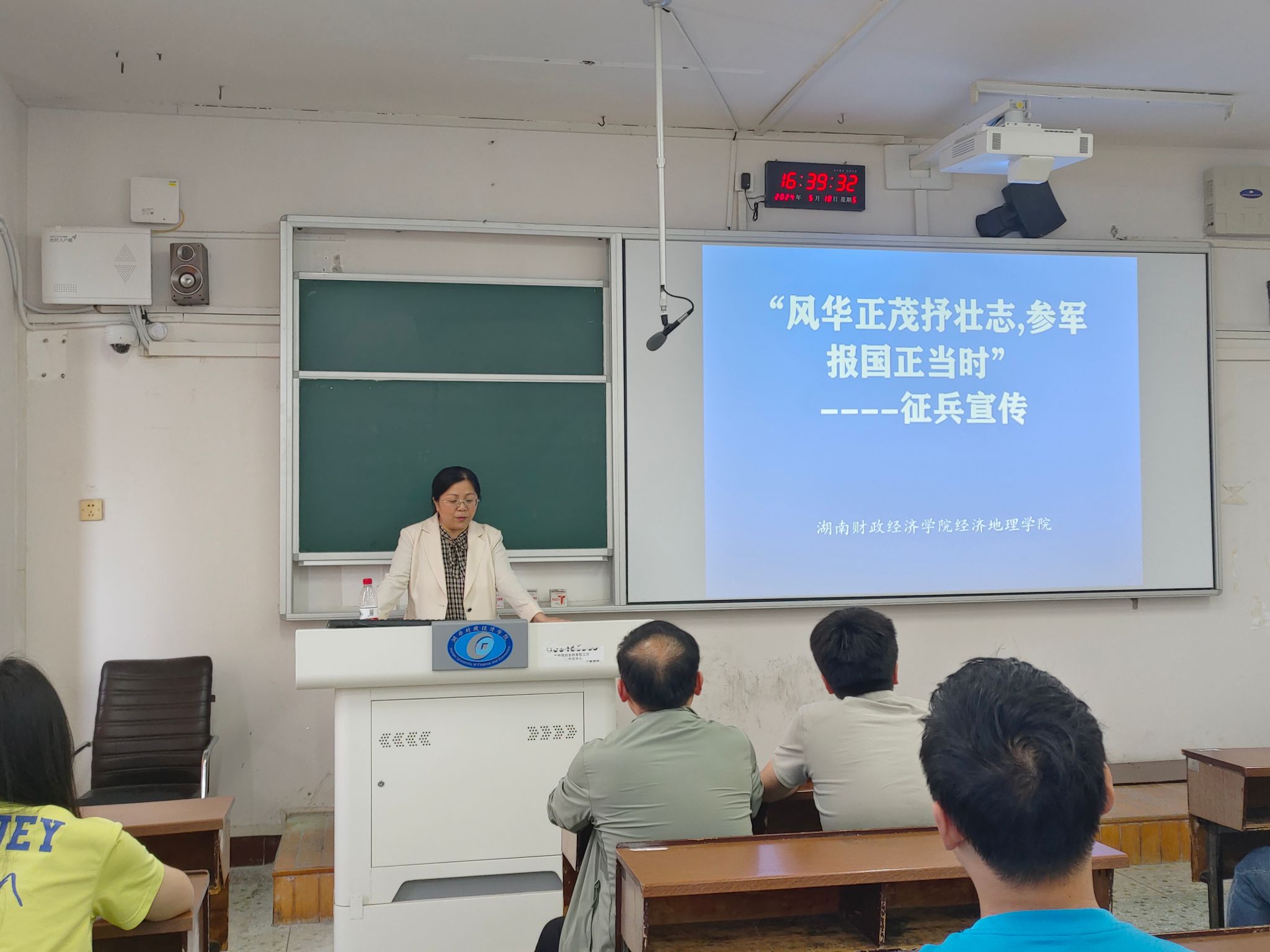 (本网讯)为帮助学生深入了解国家应征入伍政策,切实做好征兵宣传动员和组织报名工作,4月18日,经济地理学院在第二教学楼2411组织召开“风华正茂抒壮志,参军报国正当时”征兵宣传主题大会。院直属党支部书记姚旭辉、学工办主任刘娟、5名教师代表以及学院全体同学参加了本次宣讲会。