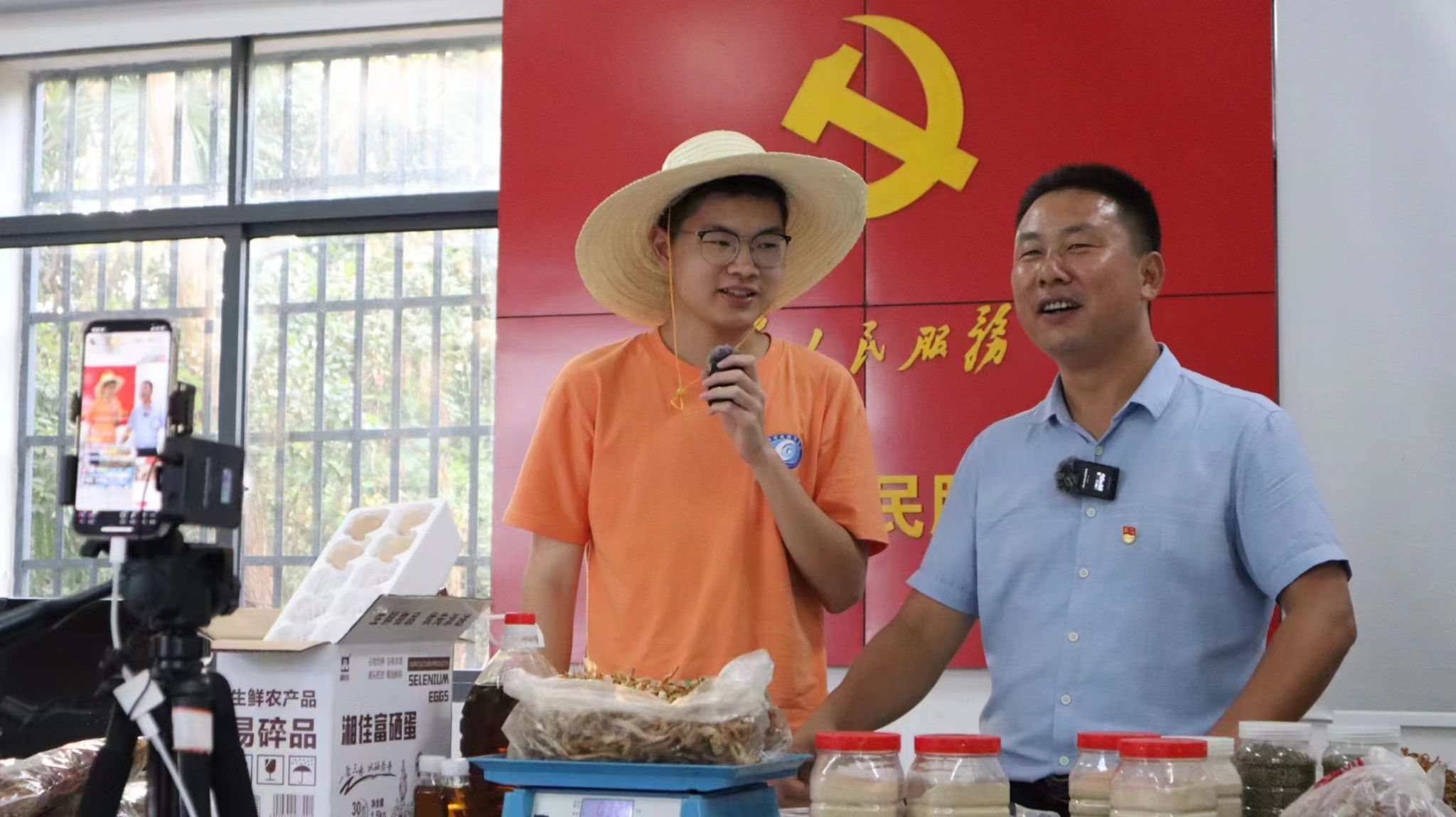 为了“安心支书”助农直播的更好开展,实践队成员们花费了大量时间和精力对当地特色农产品进行研究,并向村民主播介绍所销售农产品的基本信息及当前销售情况。正式开播前,刘安星为实践队成员打样,并邀请成员们参与其中,亲身体验直播带货,帮助农户推广宣传特色农产品。