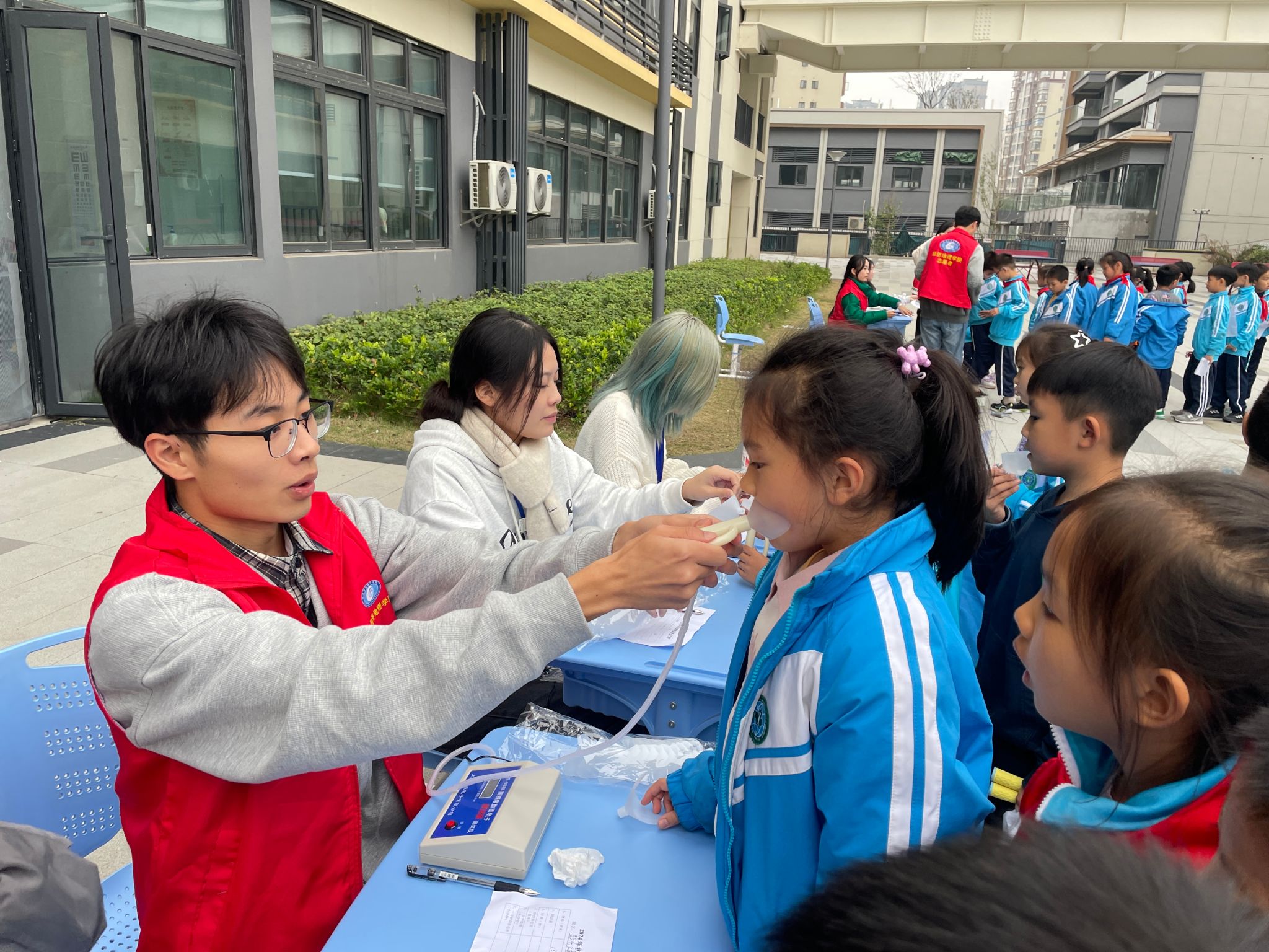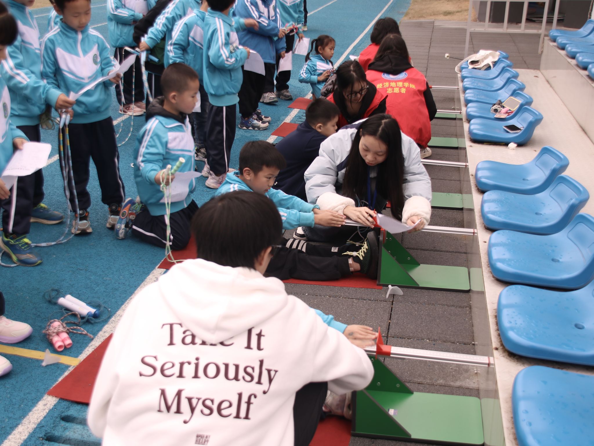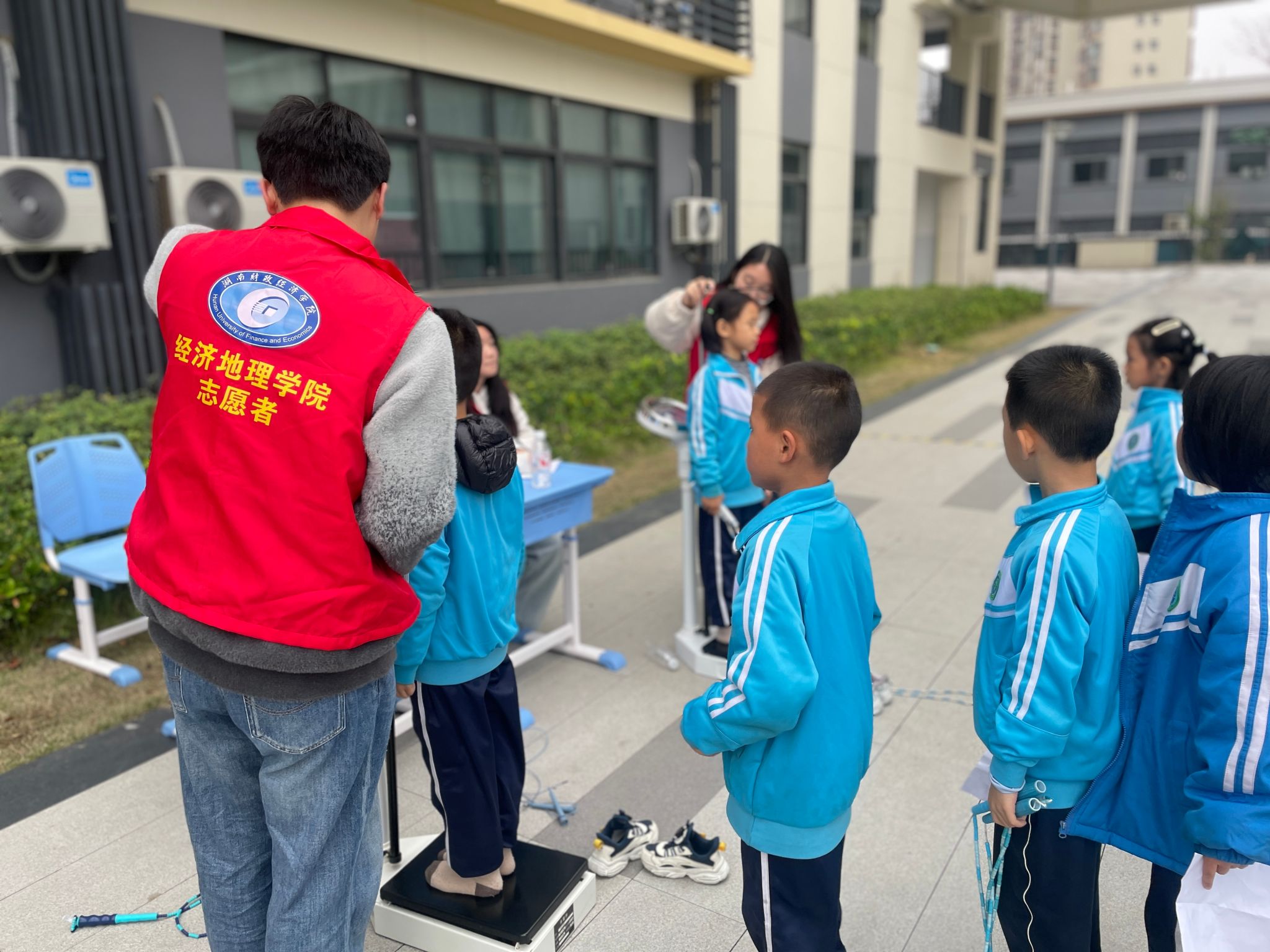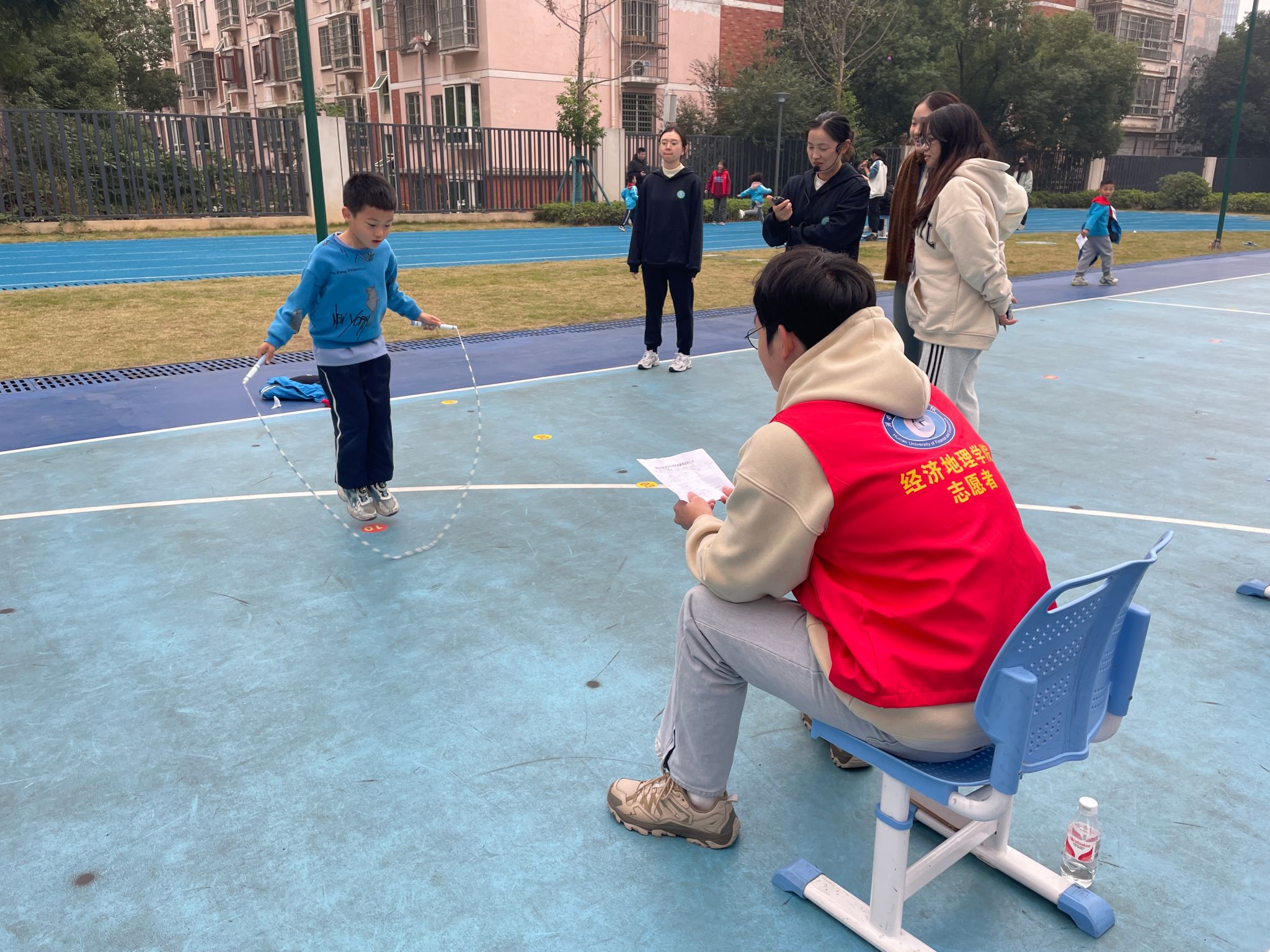 为确保活动的顺利开展,运动会总负责人、体育老师陈波针对评判标准等相关内容为志愿者们进行了全面而细致的讲解。随后,志愿者们分为五个不同项目小组,分别开展身高体重测量、跳绳比赛、50米跑、肺活量检测、坐位体前屈负责的裁判工作,并认真做好数据登记。