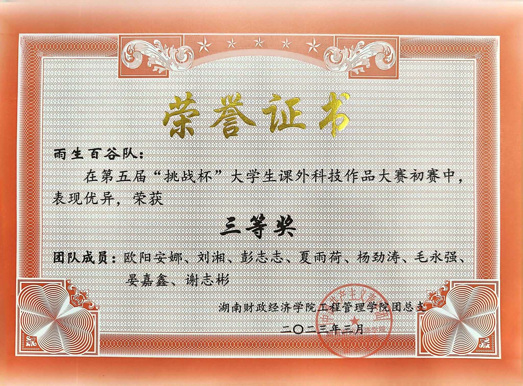 学科竞赛中,405寝室的同学们也是“获奖大户”。彭志志带领团队在第五届全国大学生土地国情调查大赛斩获二等奖,新文科实践创新大赛获全国优秀奖;程泽宇在人民城市全龄友好社区创意大赛、长沙市智力运动会桥牌团体赛获奖;毛永强和小伙伴在“挑战杯”大学生课外科技作品大赛初赛表现出色。这些成绩,是他们实力的证明!每一张证书都诉说了逐梦奋斗的约定,每一个奖项都见证了思维碰撞的火花。这群并肩作战的伙伴们以热爱为帆,以拼搏为桨,在创新实践的星辰大海中破浪前行。