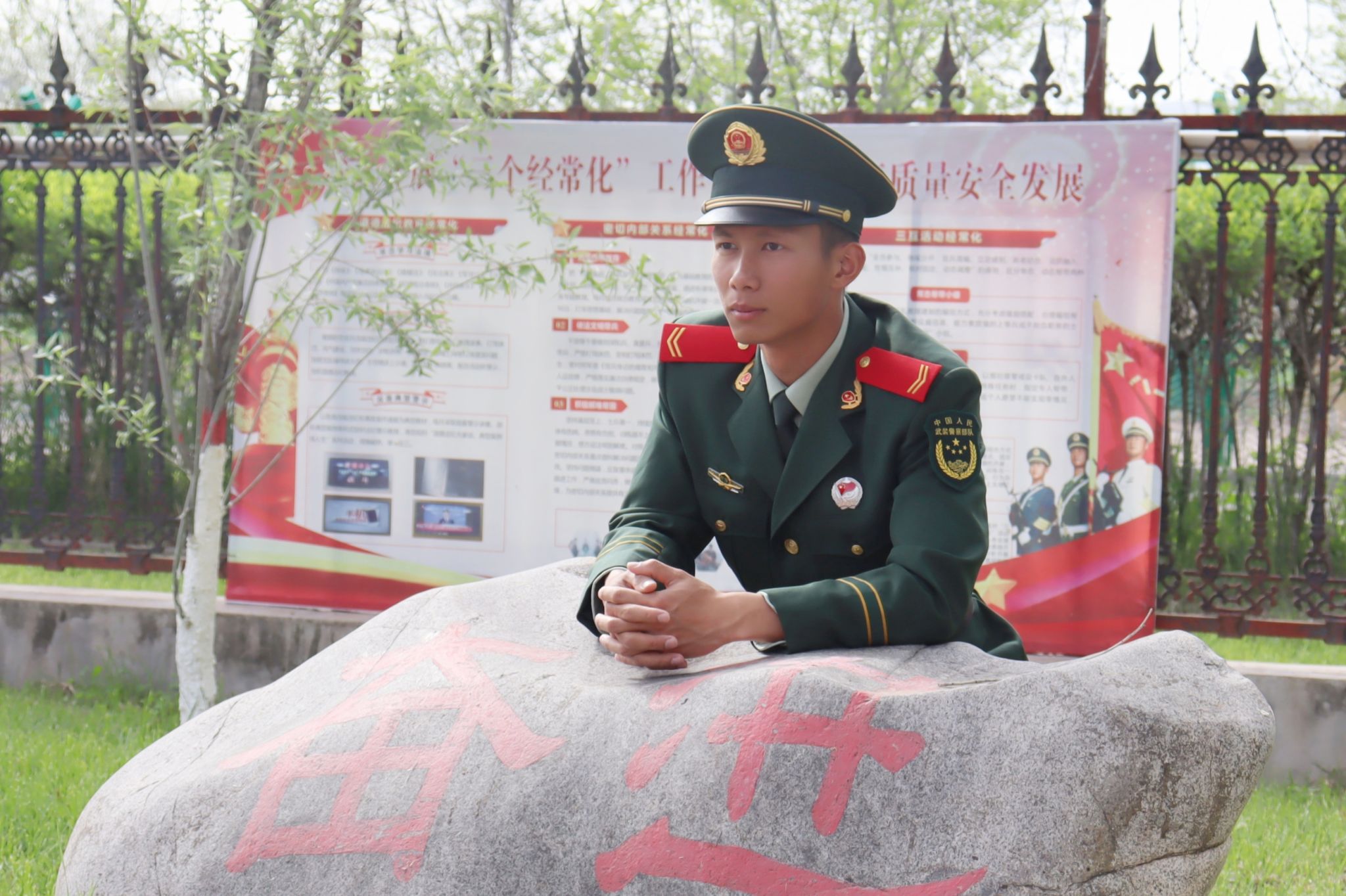 在新疆服役的700多个日日夜夜,袁东升克服自然环境恶劣、生活条件艰苦等重重困难,不畏严寒酷暑,不惧艰难险阻,用青春和热血诠释着对祖国和人民的无限忠诚。40℃高温下,他负重30公斤开展徒步行军训练,挑战体能与意志;零下20℃,他在雪地里执行潜伏任务,眉毛和睫毛结上冰晶也一动不动;训练场上,他在尖刺密布的铁丝网下,以低姿、侧身匍匐两种姿势快速通过,手腕和膝盖上的血痕是他坚韧不拔的见证。尽管条件艰苦,但袁东升始终坚守岗位,用实际行动践行着“清澈的爱,只为中国”的铮铮誓言。