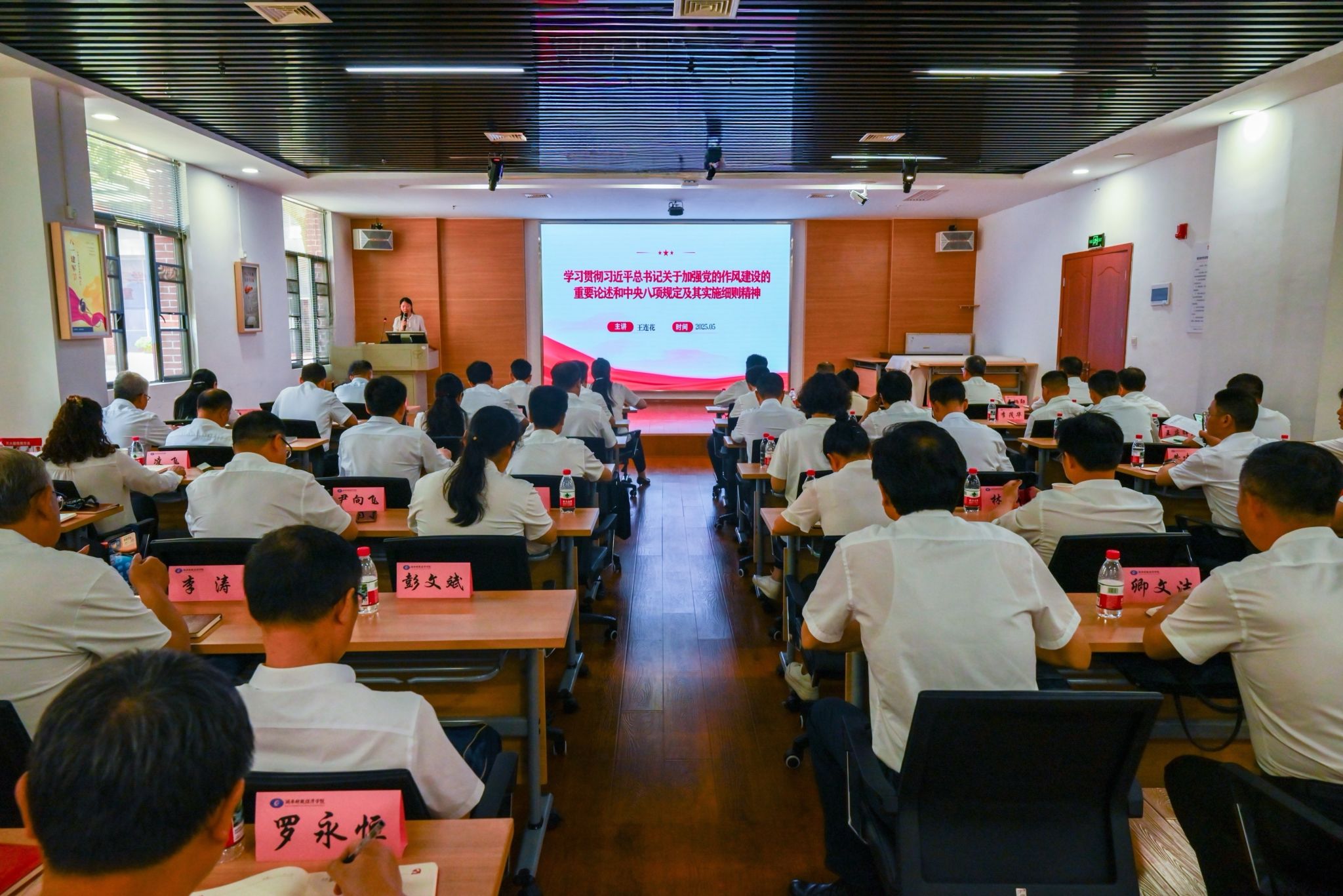 湖南反腐倡廉警示教育馆是全省开展党性党风党纪教育的重要平台,全面展示了党的十八大以来湖南省推进自我革命的实践和成效,深刻剖析了近年来省内查处的部分严重违纪违法典型案例。在讲解员的引导和解说下,全体学员依次观看了“伟大变革 开辟百年大党自我革命新境界”“潮涌三湘 以高度政治自觉推进自我革命”“纠风治弊 丰富自我革命有效途径”“肃贪反腐 打好自我革命攻坚战持久战”“固本培元 筑牢自我革命思想根基”五个部分。全体学员还聆听了中共湖南省委党校、湖南行政学院党史教研部副主任王连花主讲的“学习贯彻习近平总书记关于加强党的作风建设的重要论述和中央八项规定及其实施细则精神”专题党课。