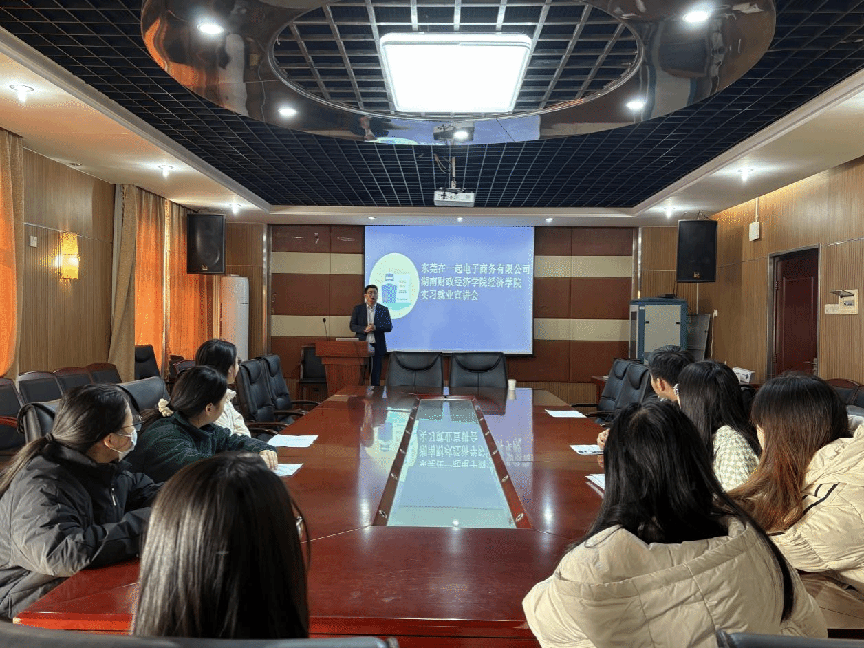 (本网讯)12月18日上午10点,东莞在一起电子商务有限公司校企合作项目负责人张总在经济学院1014会议室,为我院2026届毕业生带来了一场内容丰富、贴近实务的就业实习宣讲会,现场气氛热烈。