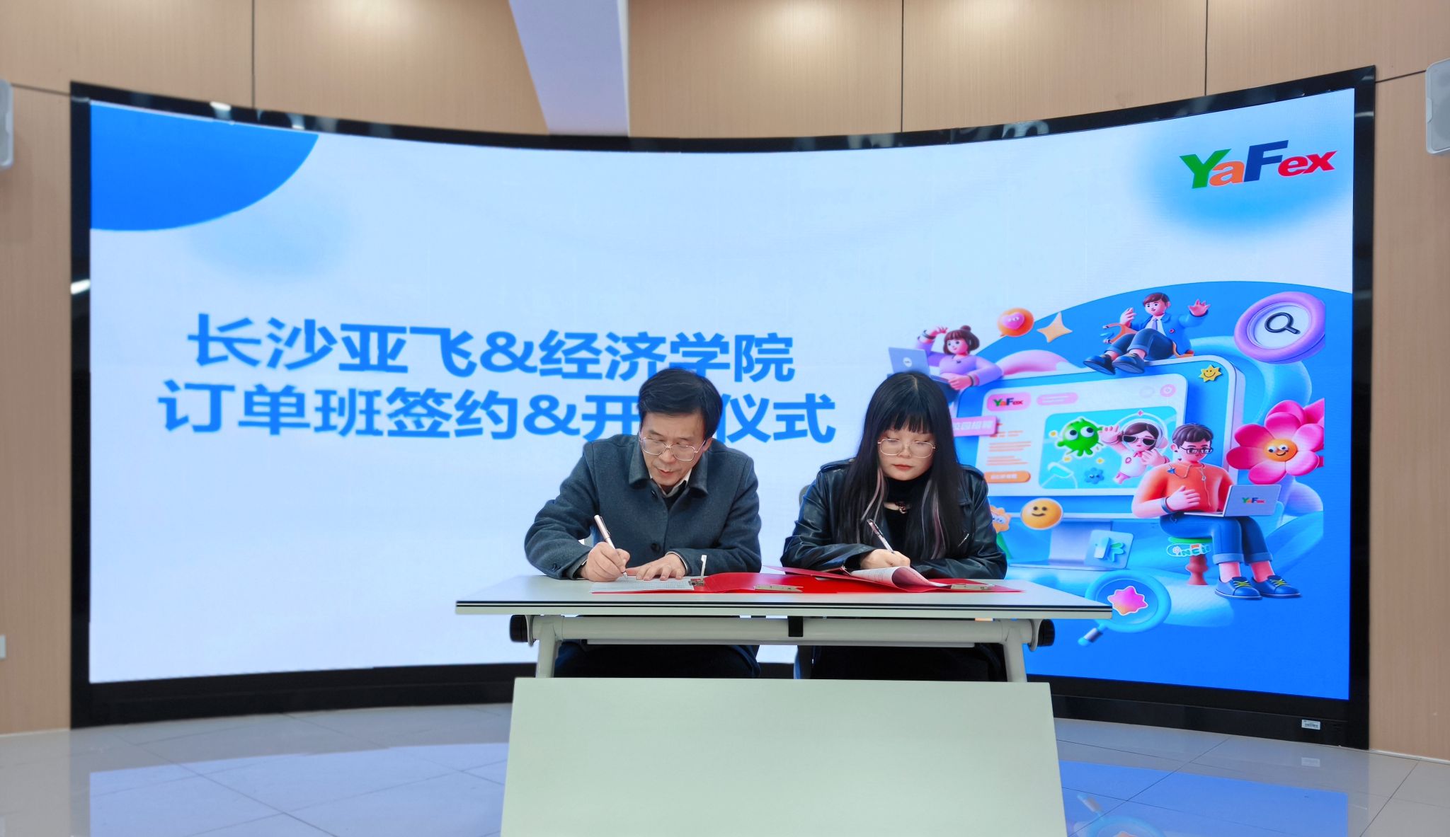仪式由长沙市亚飞科技有限公司人力资源部忠艳主持。李勇辉与李方玉分别代表学院与企业签署了订单班合作协议,标志着双方在人才培养、课程共建、实习就业等方面的合作迈入新阶段。