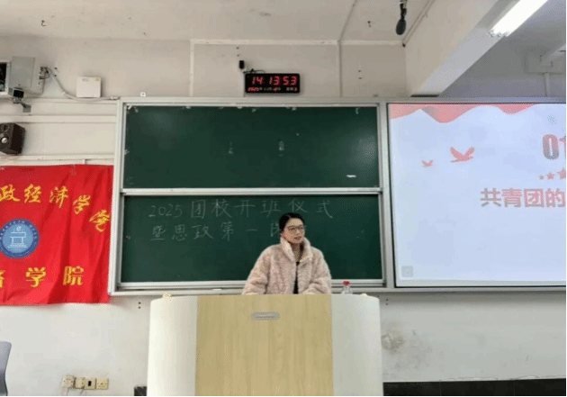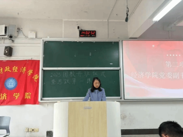 (本网讯)11 月 12 日下午,经济学院在主校区 3101 教室举办 2025 年下半年团校基础班开班仪式暨思政第一课。学院党委副书记刘英、学工负责人谢龙、团总支书记宋赛男、学生支部书记欧璐及团校全体成员出席了本次活动。