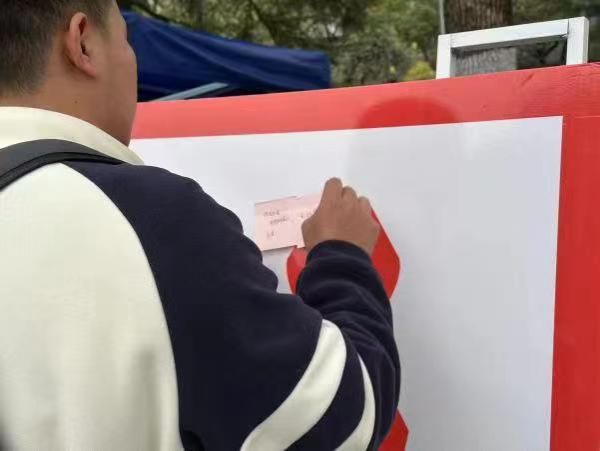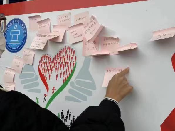 活动当天,学生们在9名志愿者的引导下在便利贴上写下自己对艾滋病人的祝福并粘贴到白板上。同时志愿者们积极向同学们进行防艾常识科普。“艾滋病离我们并不遥远,了解并正确认识艾滋病我们才能更好的保护自己也保护他人。”这是我们同学的心里话,同时也正是我们举办活动的初衷。