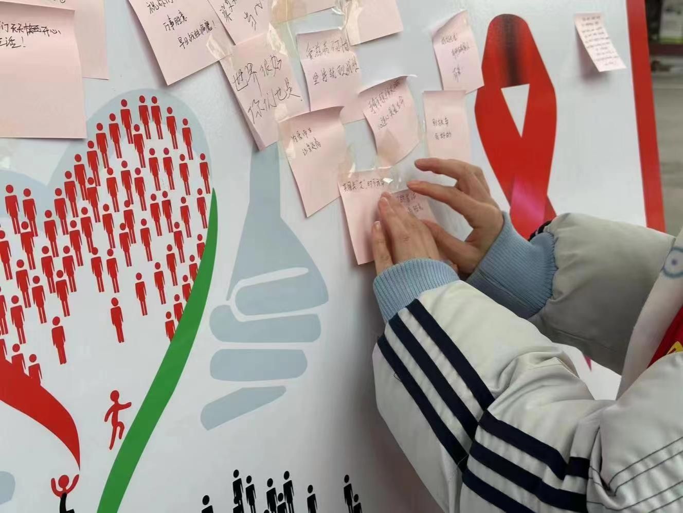 同学们写下对艾滋病患者的美好祝愿