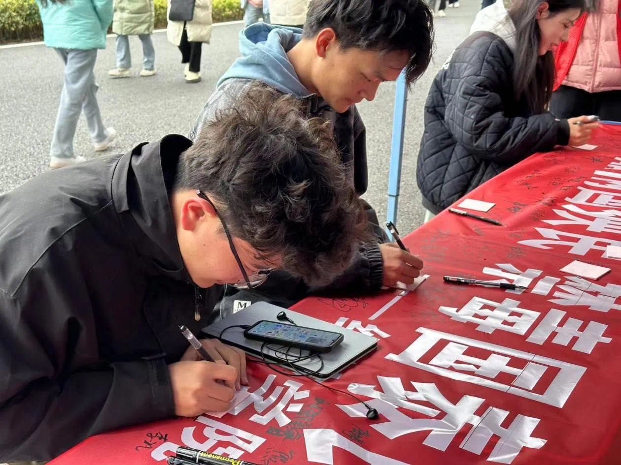 星辰志愿服务队在校内大礼堂侧面举行“毒品祸国殃民,禁毒国泰民顺”禁毒签名活动。