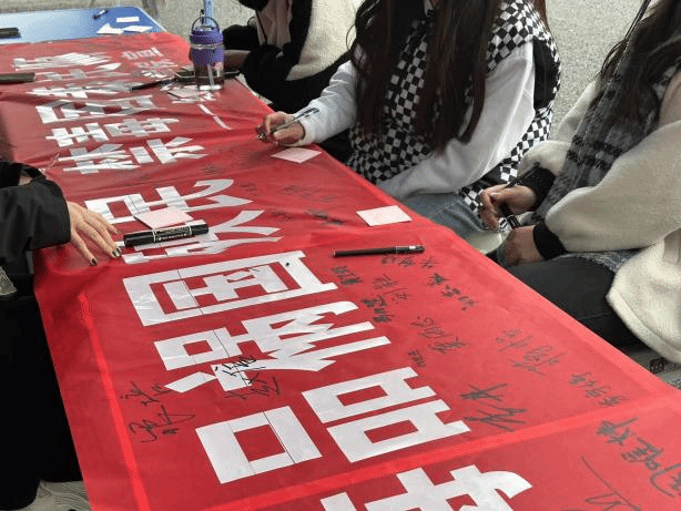 在活动当天下午,同学们在志愿者的引导下,在“毒品祸国殃民,禁毒国泰民顺”签名条幅上郑重签下了自己的名字以表达同学们积极参与禁毒斗争,为构建“无毒校园”与和谐社会、为国家禁毒事业贡献青春力量的决心。“我们不仅要自己了解禁毒知识,还要提醒我们身边的亲朋好友也要远离毒品,保护自己,保护我们的家园。”这是参加活动后同学们的心声。