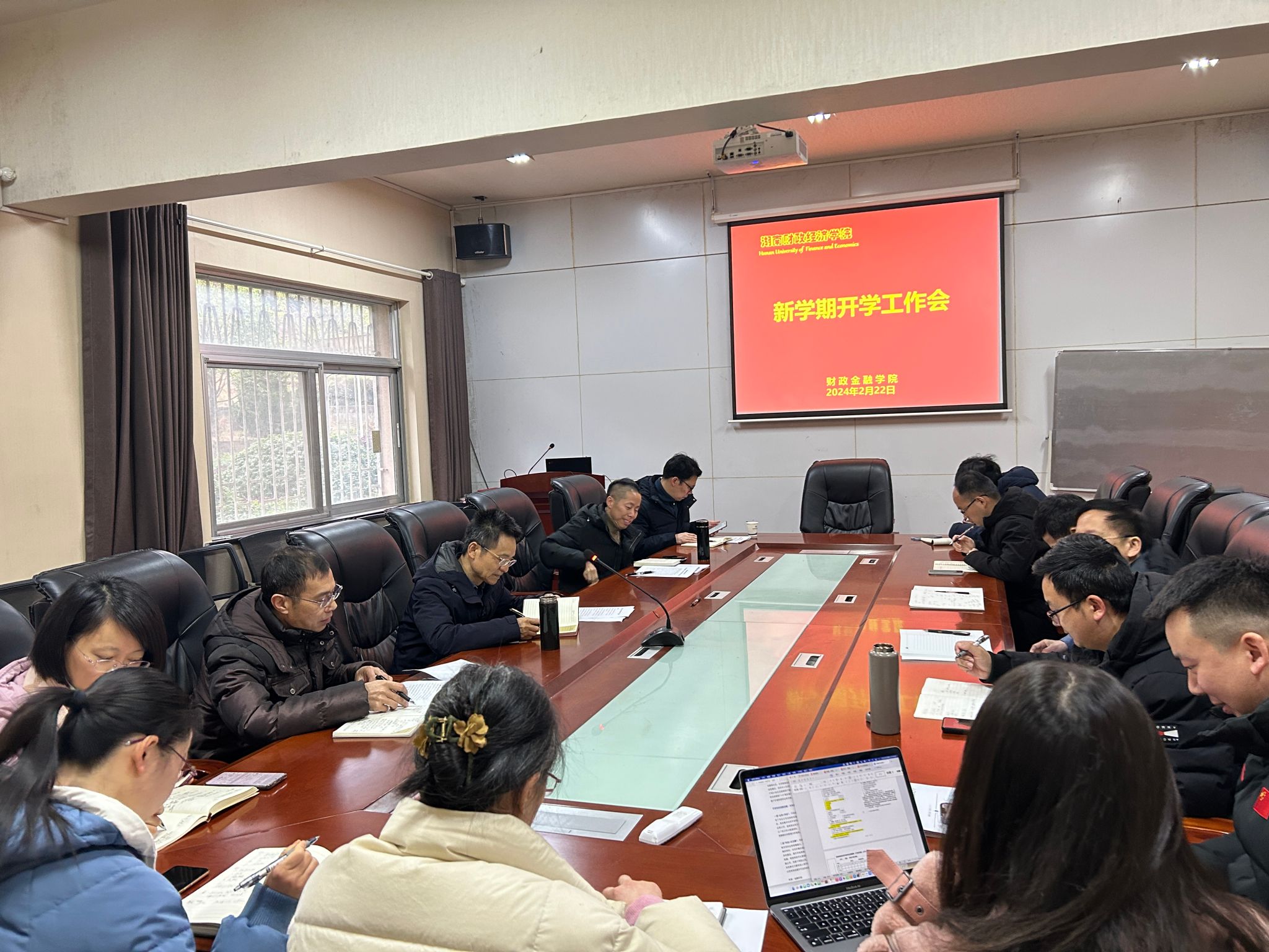 (本网讯)2月22日上午,财政金融学院在办公楼119会议室召开党政联席扩大会议暨2024年新学期开学工作会。会议由院长刘辉煌主持,学院全体教职工参加。全体院领导,综合办、教务办、学科办、学工办主任,各系主任,毕业班辅导员参加会议。