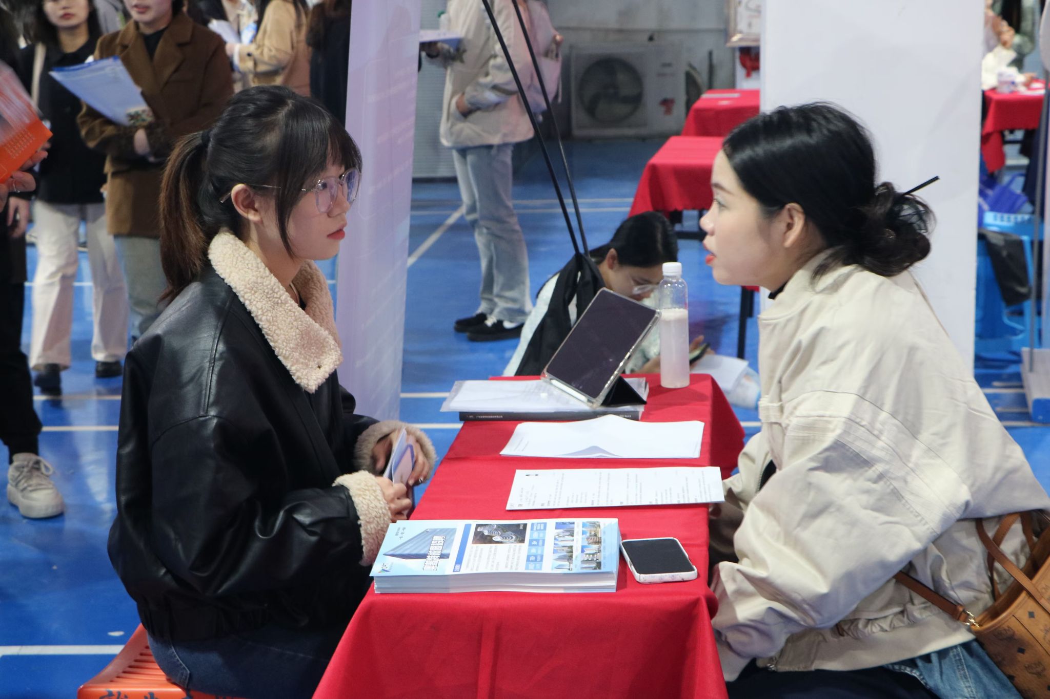 参会求职学生络绎不绝,求职气氛浓厚,毕业生们手持精心准备的简历,积极与用人单位就岗位需求、发展空间、薪资待遇等问题积极沟通交流。参会领导在现场与求职毕业生亲切交谈,详细询问毕业生就业意向及求职情况,鼓励毕业生找准定位、提前准备,抓住求职就业关键期积极就业。