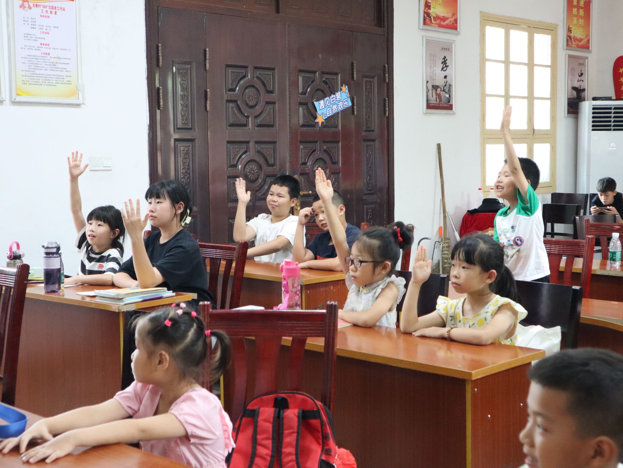 在开营仪式上,唐庄书记对“财智润乡行”志愿队的到来表示欢迎,强调了本次为期十四天的夏令营纪律,希望家长们能提高在孩子上、下学路上的安全意识。随后,余海龙书记进行发言,他希望孩子们能互敬互爱,互帮互助,养成良好的学习生活习惯,交到更多好朋友,队员们应该发挥好专业优势,以饱满的精神面貌对孩子们,为龙唐村贡献青春力量。开营仪式之后,“财智润乡行”教学组负责人黄欣儿带领孩子们通过“萝卜蹲”、“击鼓传花”等一系列“破冰”游戏让老师与孩子们迅速熟悉起来,课堂氛围逐渐趋向活跃。