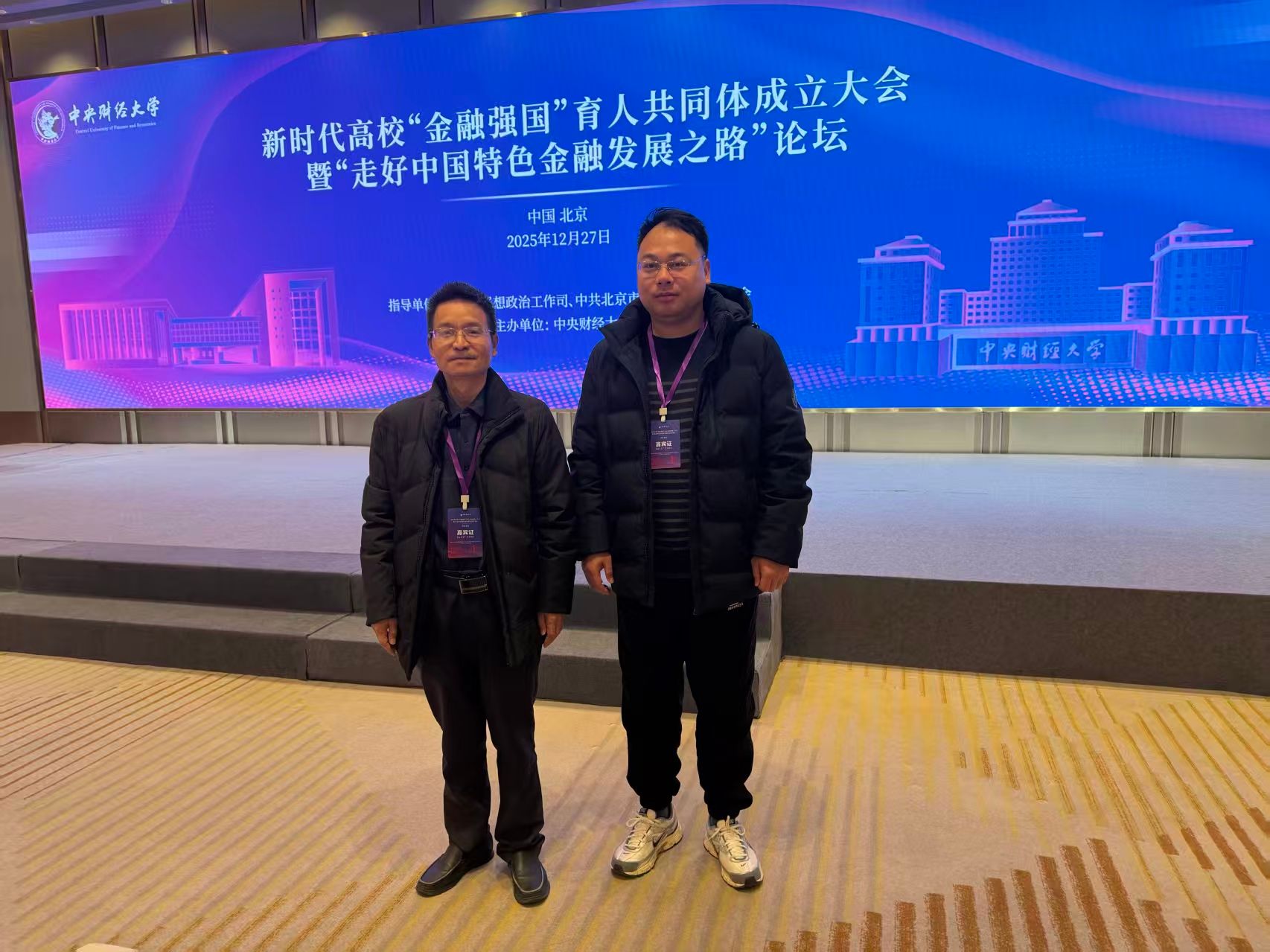 2025年12月27日,由中央财经大学主办、教育部思想政治工作司等指导的新时代高校“金融强国”育人共同体成立大会暨“走好中国特色金融发展之路”论坛在京召开。beat365官网财政金融学院院长刘辉煌教授、综合办主任李鑫应邀参会,深度融入学界业界金融人才培养与产业发展交流盛会。