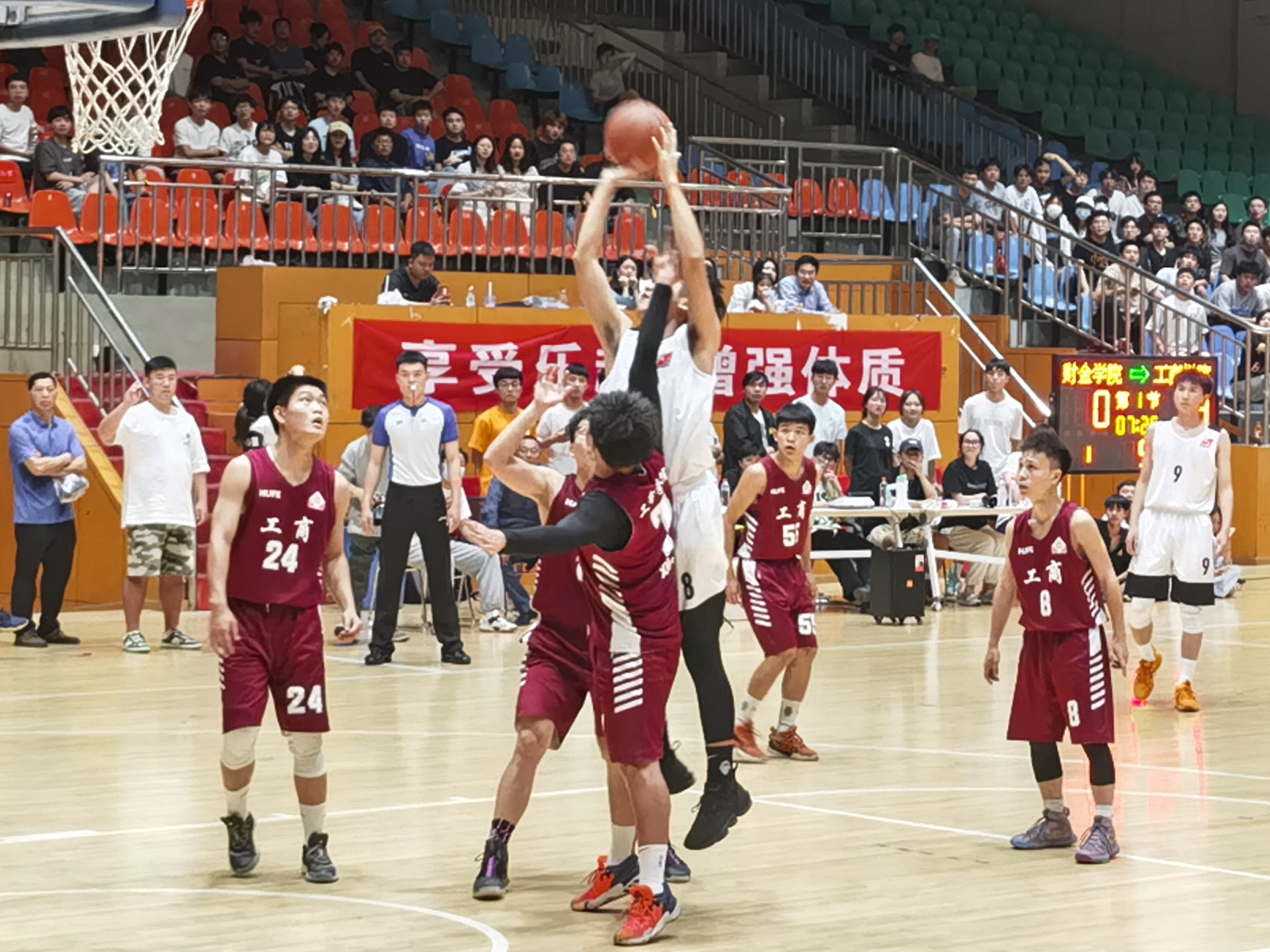 (本网讯)5月5日,beat365中文在线官网“俱乐部杯”篮球联赛决赛在主校区体育馆主馆举行,由财政金融学院对阵工商管理学院。比赛开始,工商管理学院队员率先出手,夺得先机,并展开猛烈攻势,而财政金融学院严防死守。...