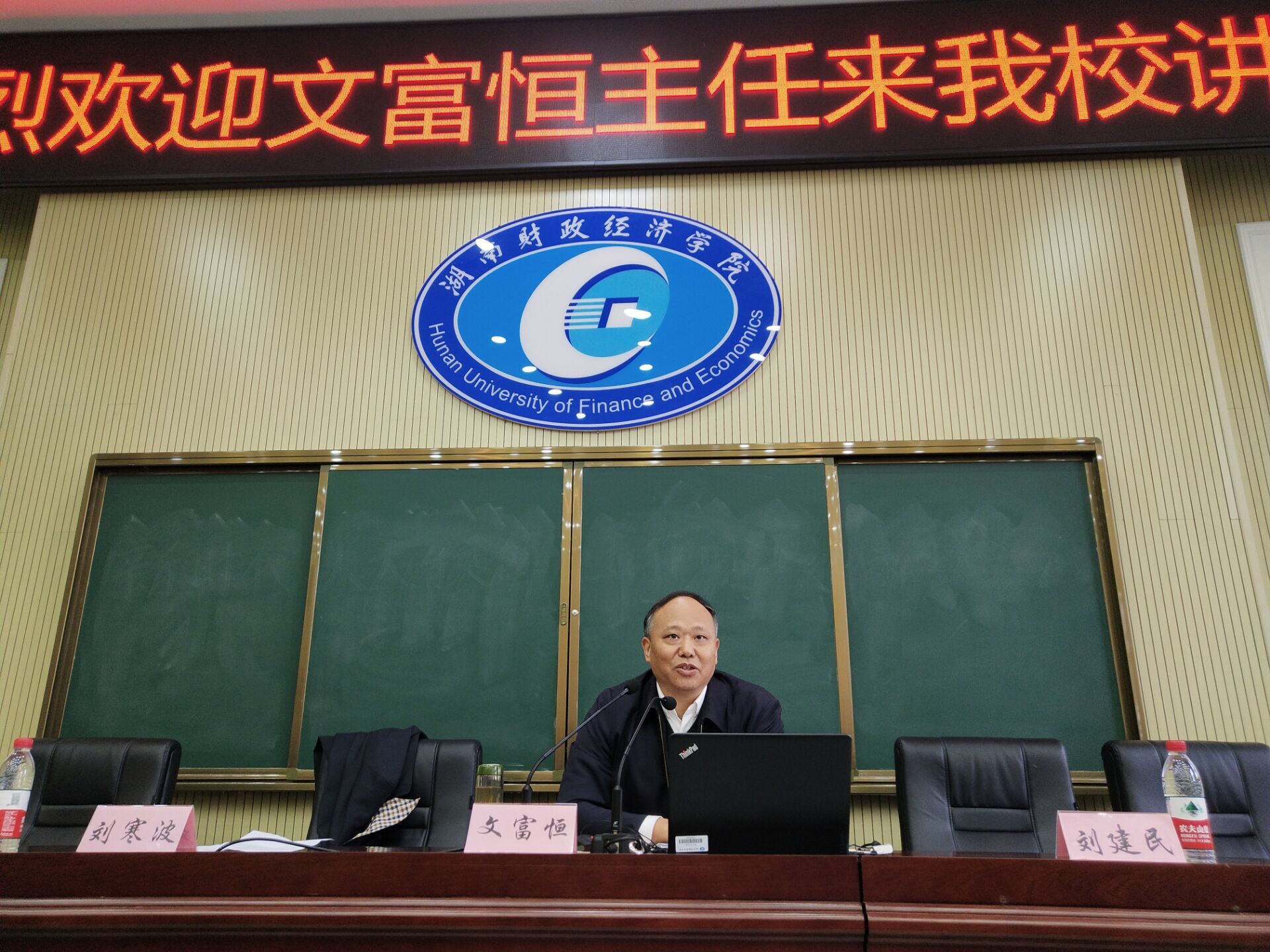 (本网讯)12月16日,财政金融学院主办的“新时代财政预算工作的实践与思考”讲座在2J02教室举行。讲座由常务副校长刘寒波主持,省人大常委会预算工作委员会主任文富恒应邀作专题讲座。副校长刘建民、财政金融学院院...