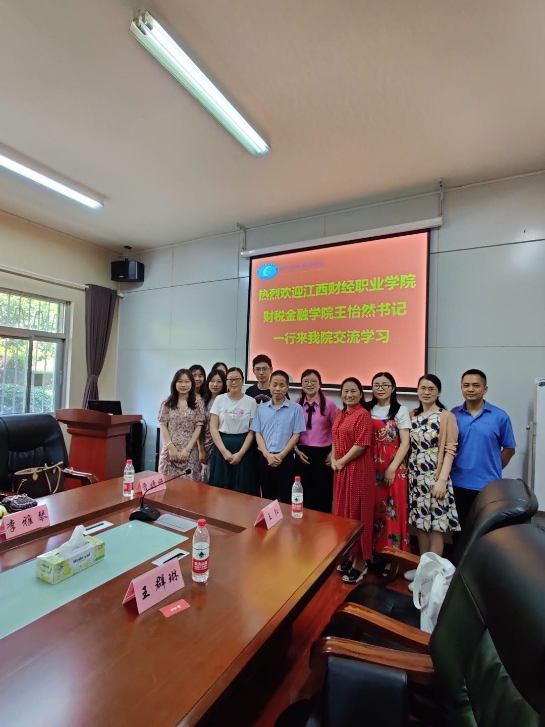 (本网讯)8月24日,江西财经职业学院财税金融学院党总支副书记王怡然、金融教研室主任龚奕一行6人来我院交流学习。我院副院长肖燕飞、金融学系主任吴朝霞、金融学系的教师代表等参加了此次交流会。 &n...