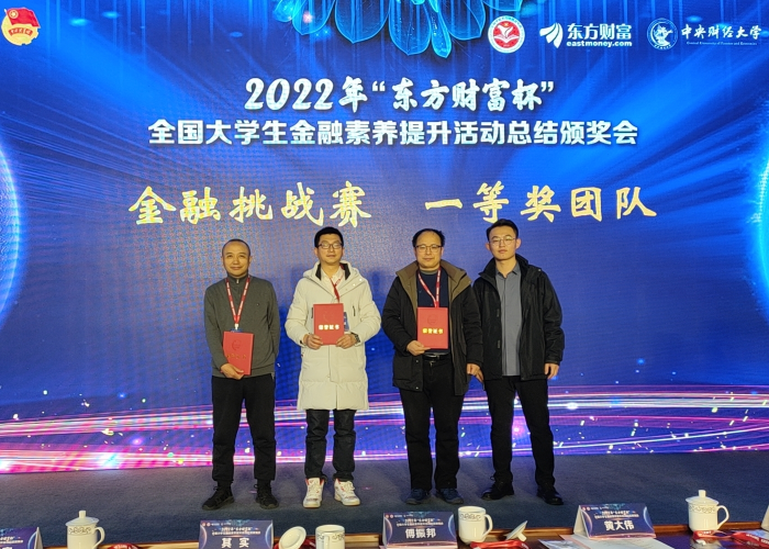 (本网讯)近日,2022年“东方财富杯”全国大学生金融素养提升活动总结颁奖会在中央财经大学举行,beat365官网17支队伍斩获多个奖项,指导老师杨勇兵作为获奖团队代表受邀参会。beat365官网代表(右二)在颁奖会上领奖本届活动分为金...