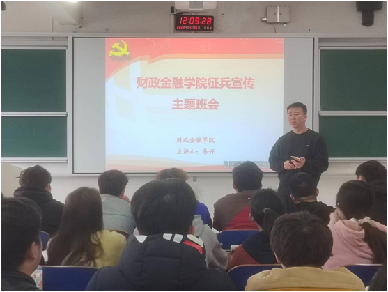 (本网讯)为帮助学生深入了解国家应征入伍政策,切实做好春季征兵宣传动员和组织报名工作,4月6日至7日,财政金融学院组织各班召开征兵宣传主题班会。班会现场会上,各班辅导员发放了2023年征兵宣传手册,播放了征兵...