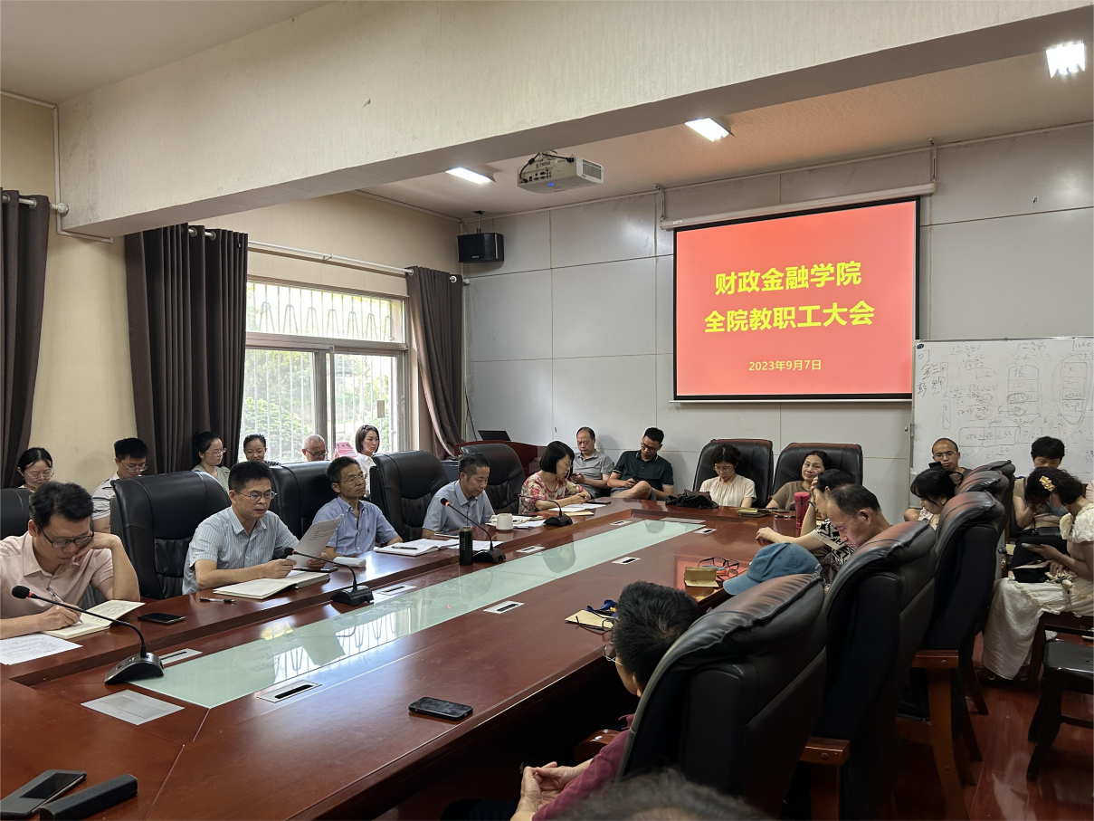 财政金融学院召开全院教职工大会 为了更好的推进新学期学院各项工作开展,9月7日,学院在办公楼119会议室召开了新学期全院教职工大会。学院全体教职员工参加,院长刘辉煌主持会议。 院长刘辉...