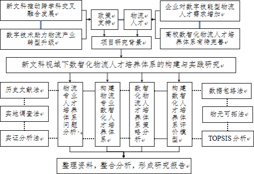 主要包括通过查阅文献、问卷调查或走访等形式掌握物流管理专业人才培养的现状;通过数据调查和文献分析,考察物流管理专业人才培养的影响因素,并采用相关定量分析方法对影响因素指标权重进行排序,同时通过软件进行数据仿真。