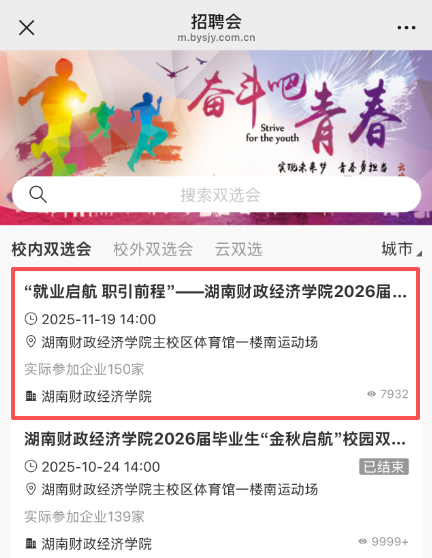 3.选择“就业启航 职引前程”——beat365中文在线官网2026届毕业生校园双选会