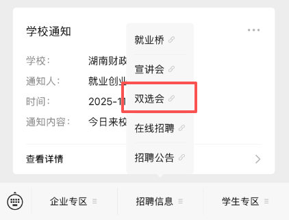 2.微信菜单中点开“招聘信息——双选会”