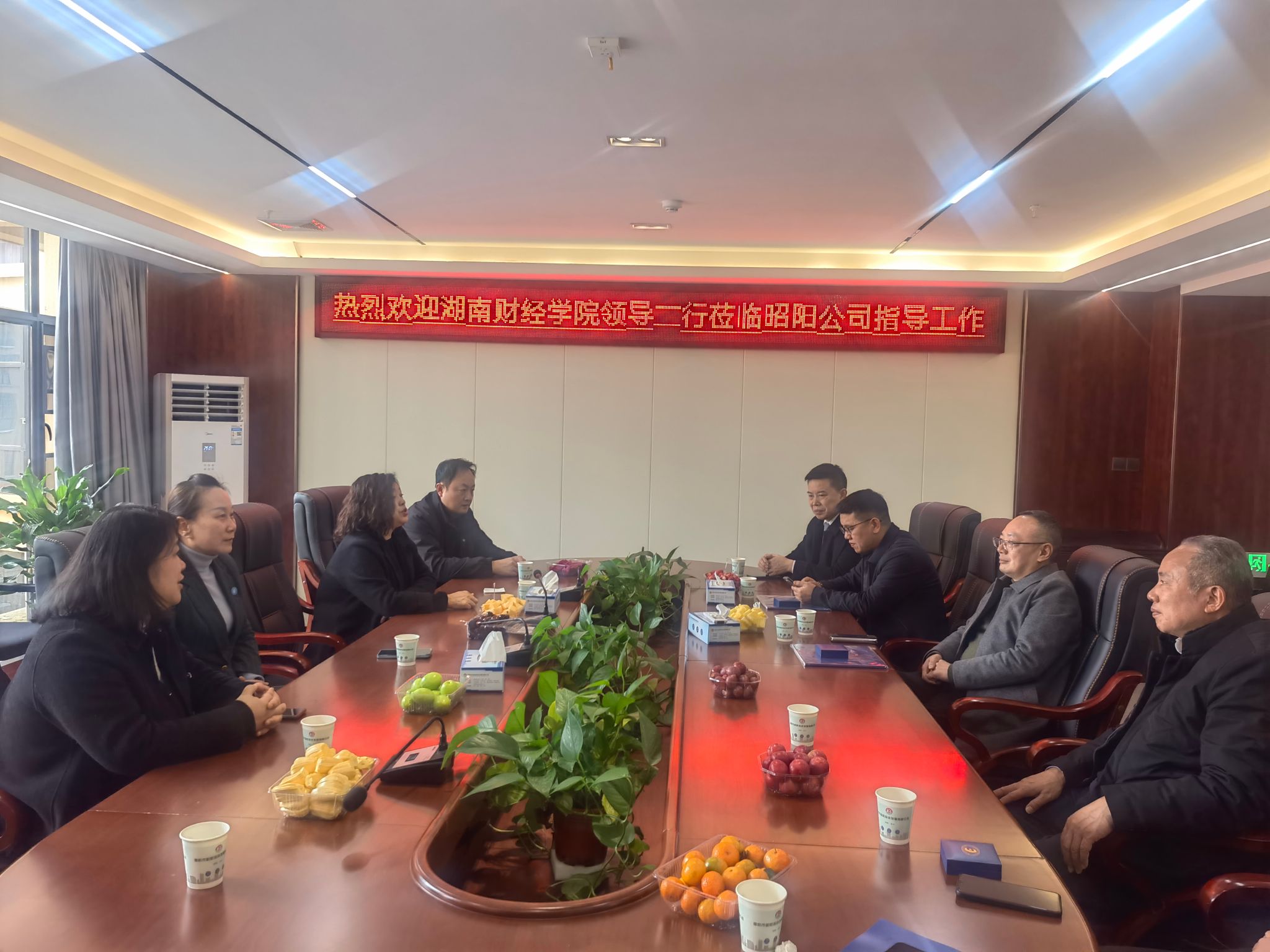 在校友们的陪同下,苏玲一行先后参观调研了邵阳华天大酒店与邵阳市昭阳投资发展有限公司。邵阳华天大酒店总经理、1997届会计专业校友蒋永超对苏玲一行的到来表示热烈欢迎,对母校的精心栽培表示衷心感谢,为母校近年来的蓬勃发展感到由衷自豪,并表达了邵阳华天大酒店愿与学校一起共同搭建合作平台,在人才共培、实习就业等方面展开深入合作的意愿。邵阳市昭阳投资发展有限公司总经理、1994届经济学专业校友李东依详细介绍了公司的发展历程、业务布局、人才需求等情况,并希望进一步完善校企合作平台,双方加强沟通交流,实现合作共赢。
