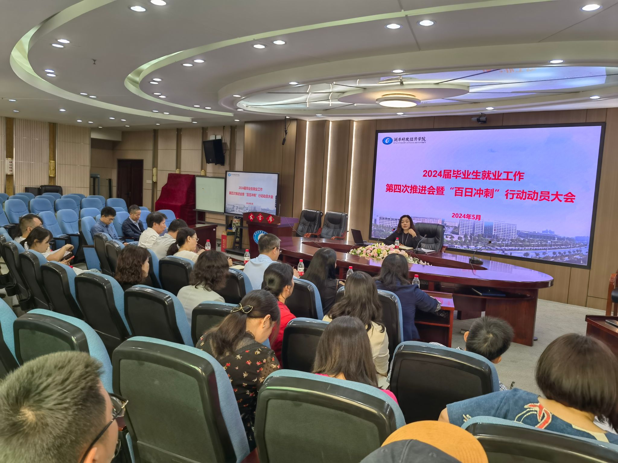 (本网讯)5月9日上午,beat365官网在办公楼视频会议室召开2024届毕业生就业工作第四次推进会暨“百日冲刺”行动动员会,对2024年就业工作进行再部署、再推进。就业创业中心全体工作人员,各二级学院书记、副书记、学工办主任(就业专干)参加会议。