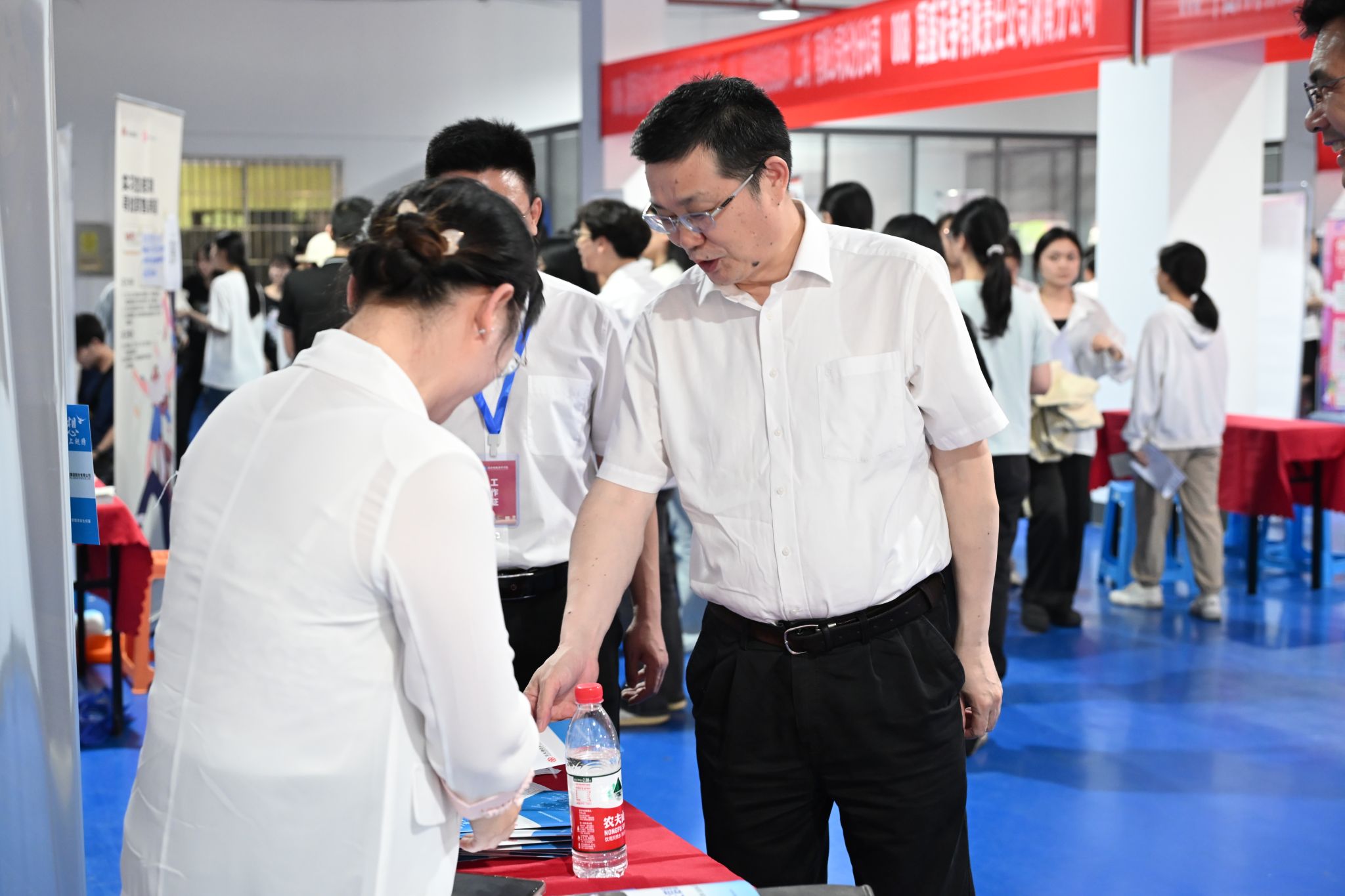 杨兰英、刘长庚、苏玲在就业创业中心负责人的陪同下先后来到现场指导工作,对企业来校选才表示热烈欢迎,希望与用人单位搭建沟通桥梁、促进人才供需对接,携手推进毕业生充分高质量就业;与参会学生亲切交谈、解答就业疑惑,鼓励学生认真准备、积极行动,争取早日顺利就业。