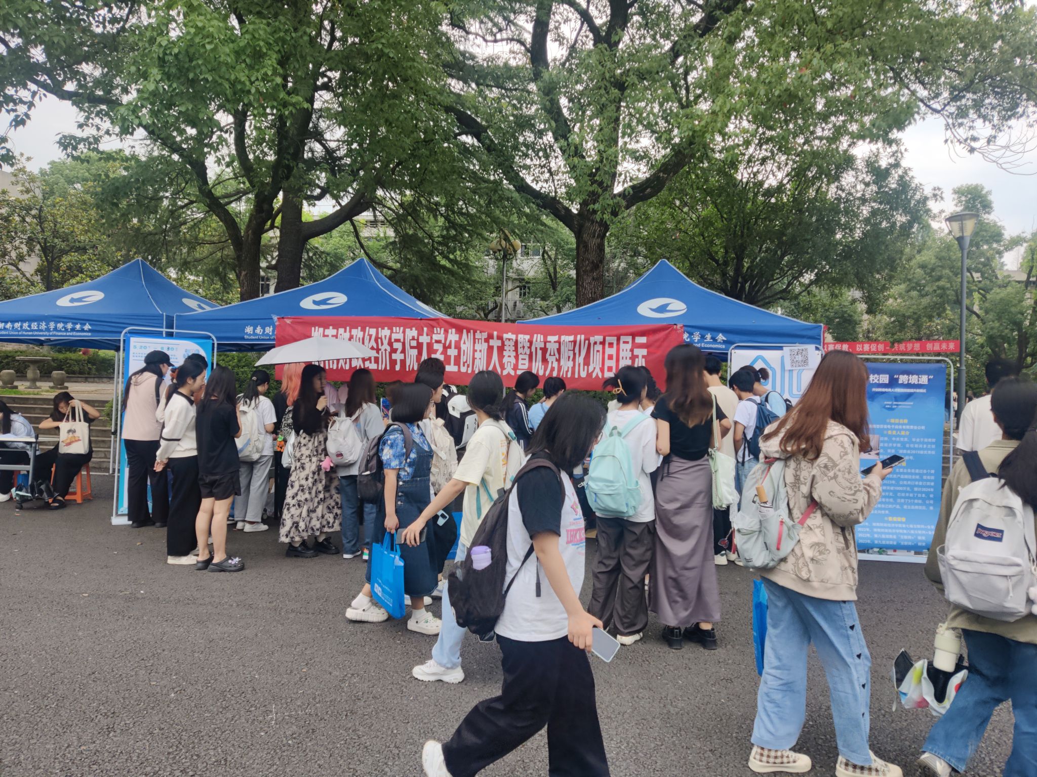 活动当天,就业创业中心精心布置了多个展位,展位处人潮涌动,气氛热烈。在宣传展位上,创新创业服务中心学生干部向过往师生详细介绍了今年比赛的宗旨、参赛流程、奖项设置等信息。