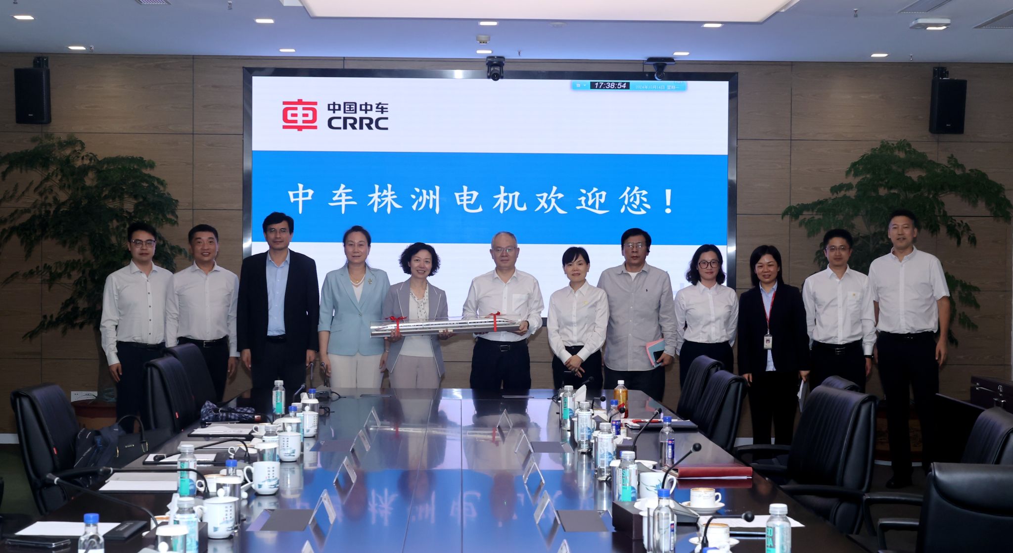 在中车株洲电机有限公司苏玲副书记从办学规模、办学实力、办学特色、办学成效、办学使命等五个方面介绍了学校的的基本情况。杨兰英书记介绍了学校的近年来所取得的优异成绩和相关合作思路。杨兰英指出中车株洲电机有限公司基于轨道交通、新能源领域等方面生产的科技产品是国之大器、民族脊梁。期待双方在产学研基地、资源资产管理、企业管理等方面建立长效机制推动合作项目落地,打造新型校企合作共建的实践典范。