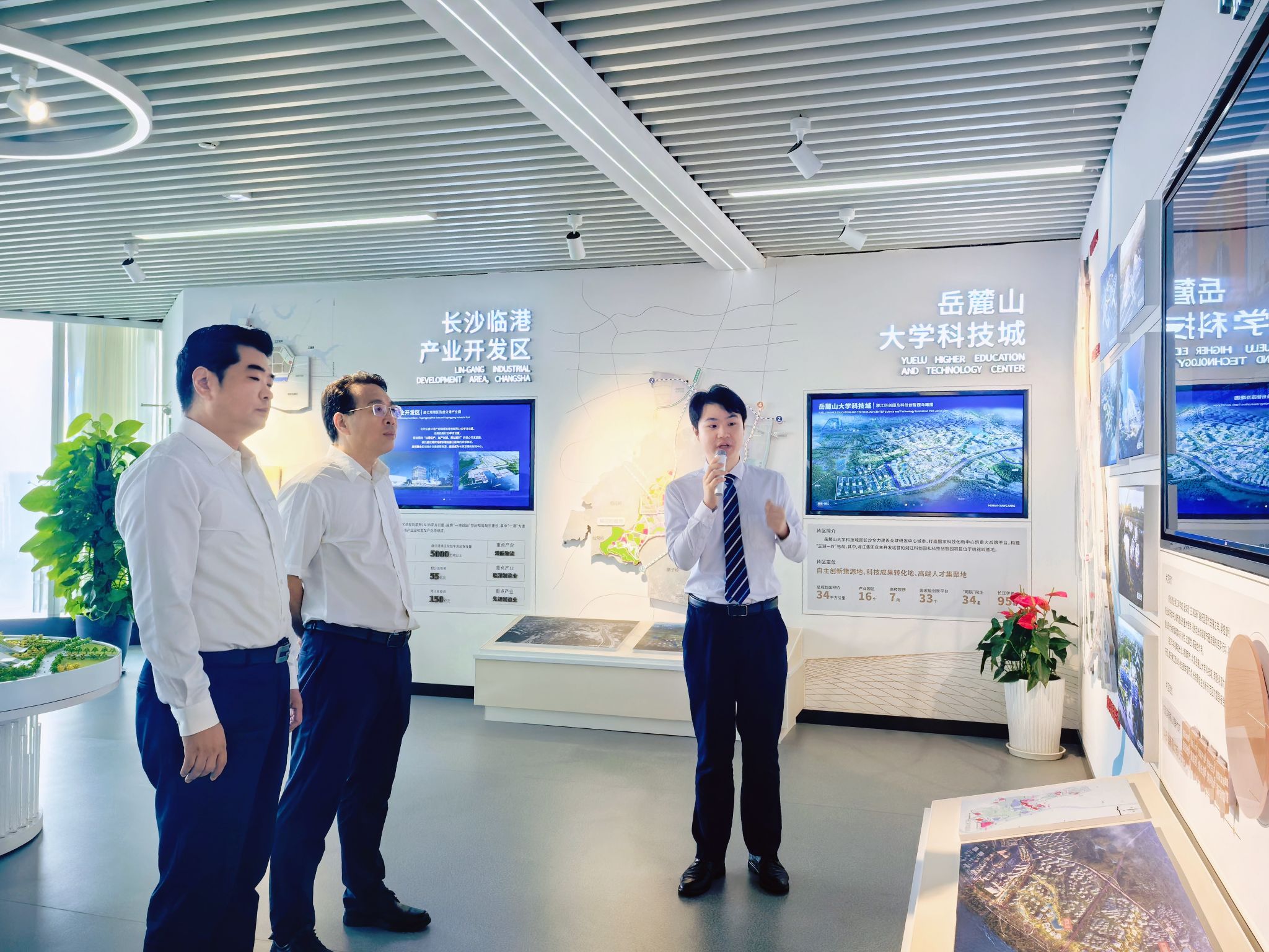 座谈前,易棉阳一行参观了湘江集团企业展厅。湘江运营公司、大科城公司、湘江商管公司和学校教务处、资产管理处、后勤处、计算机与人工智能学院、创新创业与人工智能学院等单位负责人参与座谈或陪同调研。