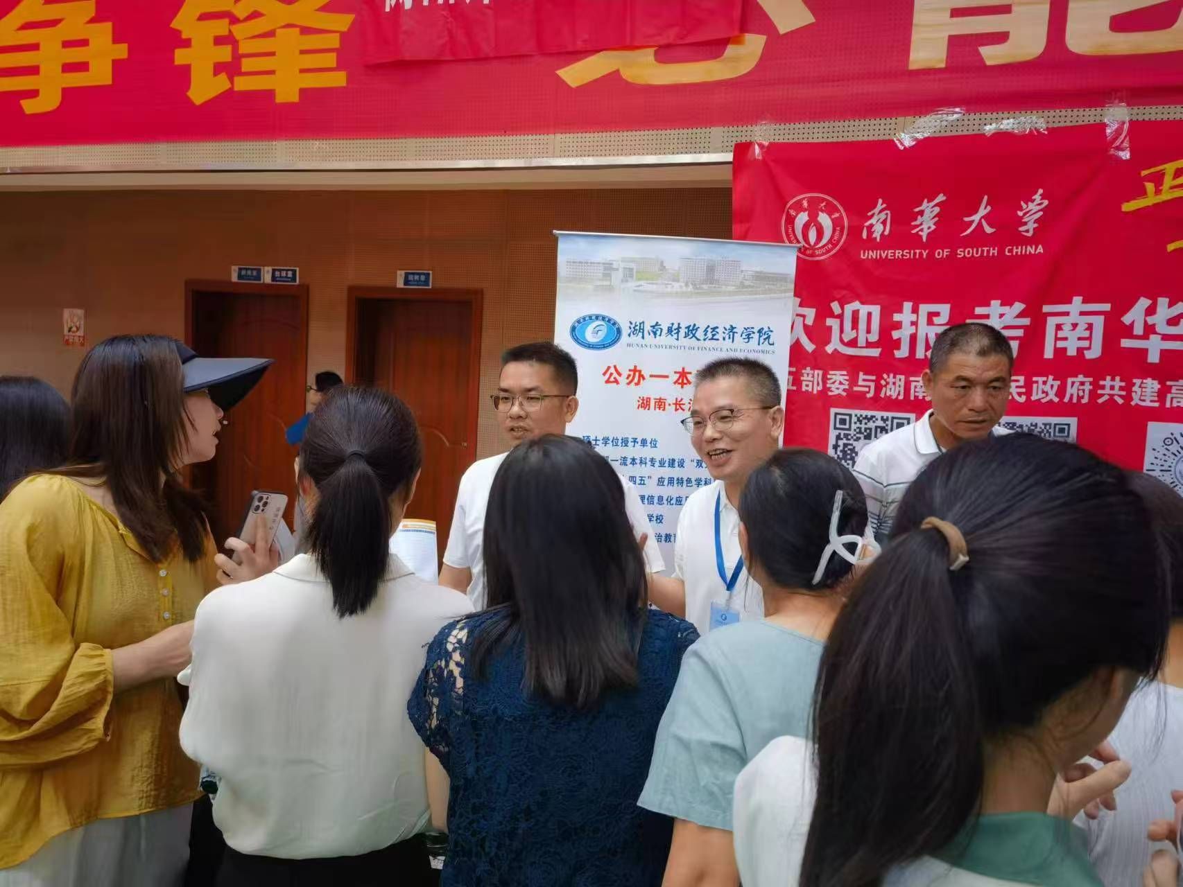 6月24日至28日,学校进行统筹安排。其一,遵循“一院一市(州)”原则,组织百余名教师,由学院院长(书记)带队,分赴全省14个市州及其下辖各县区的重点高中以及beat365官网优质生源基地中学,开展线下招生咨询、志愿填报辅导、生源基地回访等活动;其二,派遣部分招生宣传老师参加升学在线考后咨询会和湖南教育电视台考后咨询会,前往省内各市州高中进行现场宣传,为考生提供一对一的政策解读和志愿填报服务;其三,组织教职工前往长沙红星国际会展中心参加湖南省教育博览会,在现场为考生及家长提供志愿填报咨询服务;其四,6月26日至27日,招生与就业指导中心联合各二级学院及相关职能部门举办校园开放日活动,现场接待考生及家长900余人次,为考生及家长在专业填报方面答疑解惑。副校长刘钟理带队前往湖南省教育博览会和湖南师大附中招生宣传现场,慰问招生宣传工作人员,并与高考学子沟通交流。