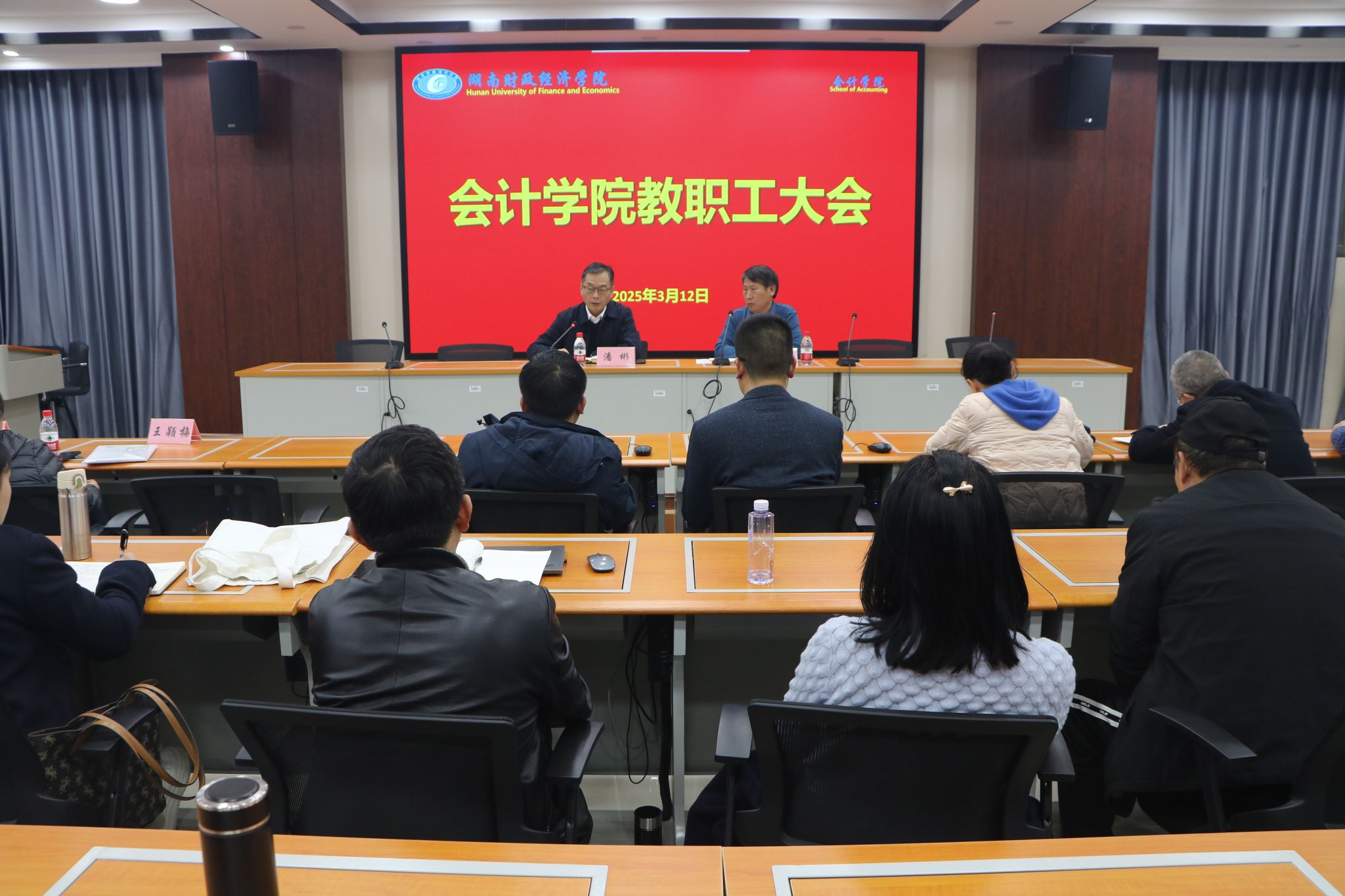 (本网讯)3月12日下午,会计学院于实验楼1403召开教职工大会暨审核评估工作推进会。会议由院党委书记戴恩湘主持,学院全体教职工参加。