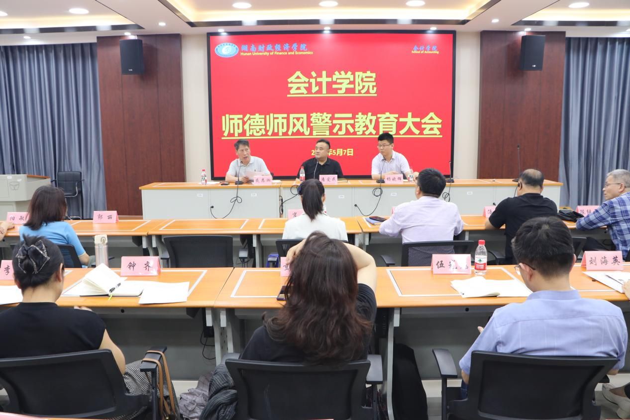 (本网讯)5月7日下午,会计学院于实验楼1403召开教职工大会。会议由院党委书记戴恩湘主持,学院全体教职工参加。