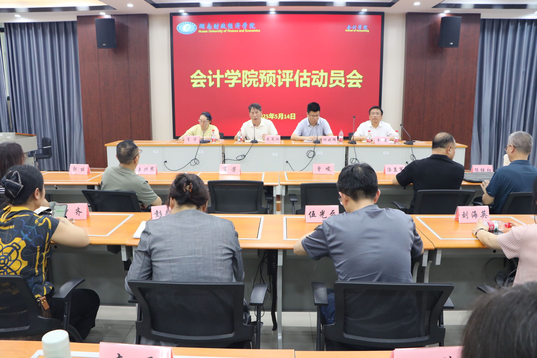 最后,院党委书记戴恩湘组织开展会计学院预评估动员大会及安全工作部署会。他在会上强调以下几点:一是要重视教育教学审核评估,严格对标评估指标体系,以高度的责任感和使命感投入工作,确保各项评估指标落实落细;二是要强化意识形态,守牢安全稳定底线,树牢问题意识和忧患意识,严格规范自身言行;三是要聚焦学生,落实全方位育人责任,要密切关注学生思想动态、心理健康及就业需求,切实提升育人实效。