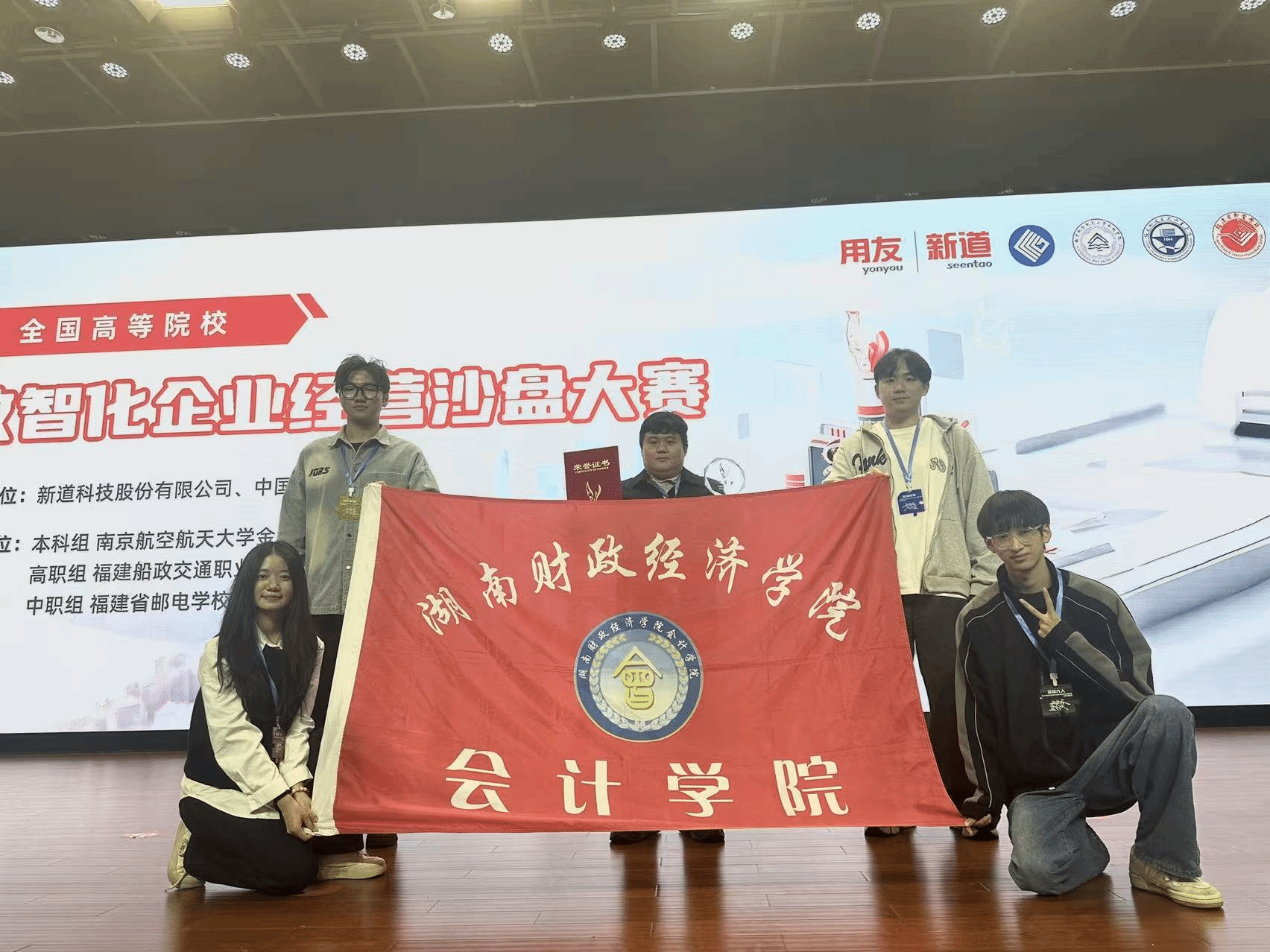 (本网讯)10月19日,第二十一届全国高等院校数智化企业经营沙盘大赛(本科组)全国总决赛在南京圆满落幕。由beat365官网会计学院李力培等教师指导,彭启涛、胡锦瑞、冯勤哲、秦子怡四位同学组成的参赛团队,凭借扎实的专业能力与出色的团队协作,荣获全国一等奖,实现了beat365官网在该项赛事中的历史性突破。