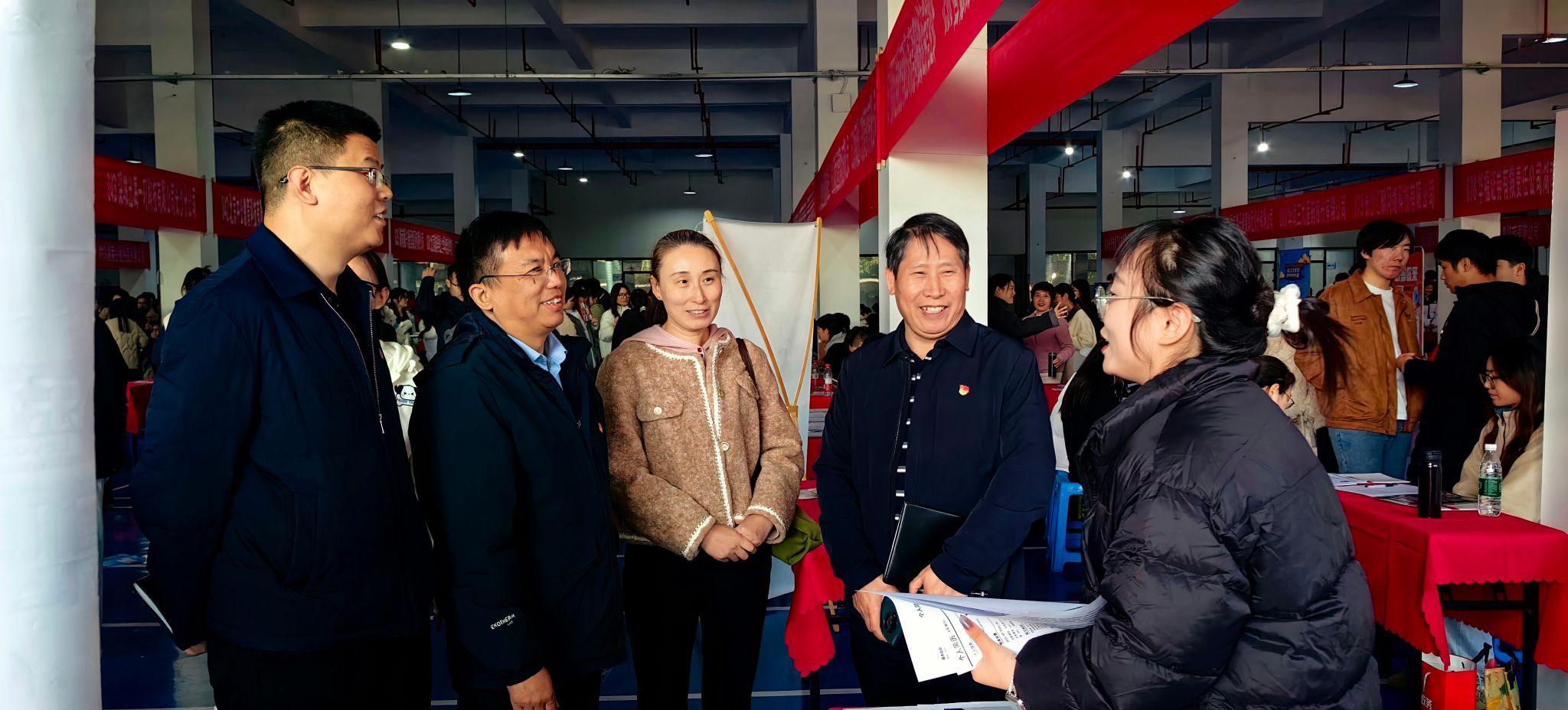 (本网讯)11月19日下午,beat365中文在线官网2026届毕业生“就业启航 职引前程”冬季双选会在beat365官网主校区体育馆一楼南运动场顺利举行,此次双选会由会计学院和财政金融学院联合承办。就业指导中心主任刘振强、会计学院党委书记戴恩湘、会计学院副院长(主持工作)杨晓辉、财政金融学院院长刘辉煌、财政金融学院党委书记肖燕飞现场指导工作,两院毕业班辅导员及全校2026届毕业生参与双选会。