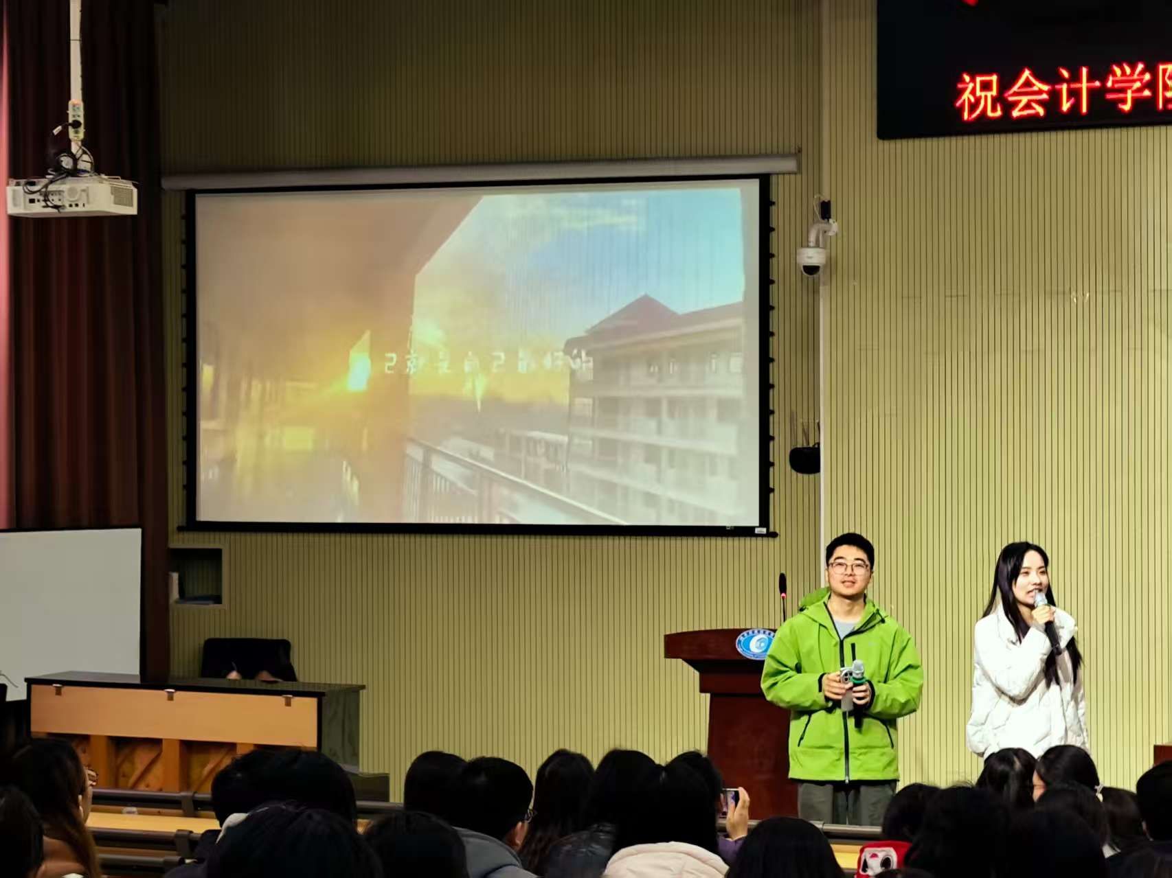紧接着,毕业班辅导员们通过多种温馨的形式为学子送上鼓励。张繁与管超男现场合唱《小美满》,以温柔旋律传递美好祝愿;胡旭和詹子露则通过提前录制的视频,送来饱含牵挂的殷切叮嘱。