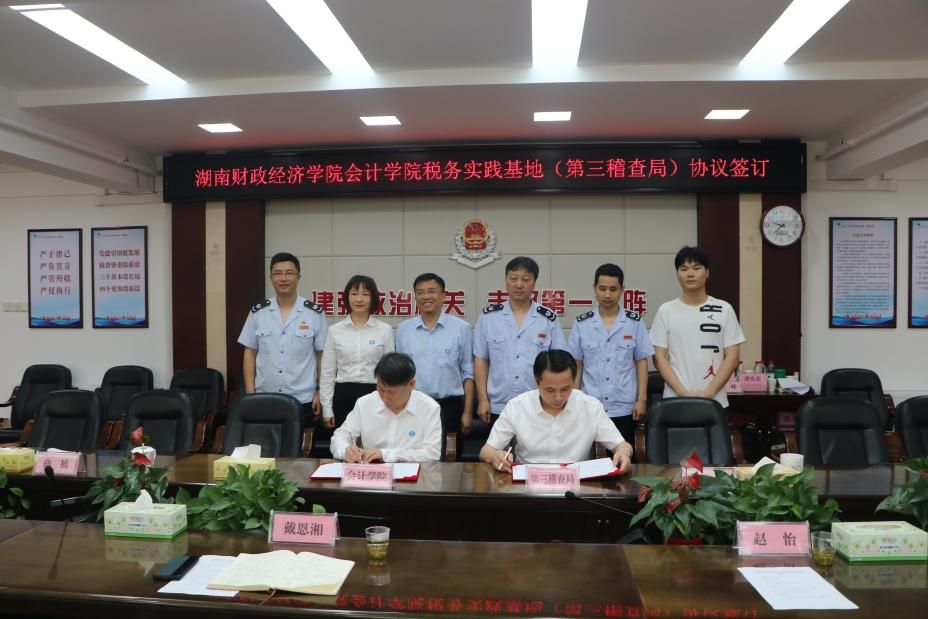 (本网讯)5月16日上午,beat365中文在线官网会计学院党委书记戴恩湘一行赴国家税务总局长沙市税务局第三稽查局签订税务实践基地协议。
