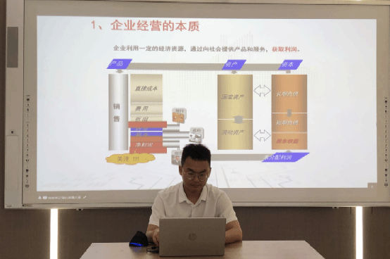李正强先生就ERP沙盘模拟系统进行了一系列讲解,从操作规则到经营方式,并带领与会师生共同进行实操。沙盘训练是通过引领学生进入一个模拟的竞争市场环境,由学生分组建立模拟公司,通过分岗位角色的扮演、合作经营企业的基本生产及管理活动等,实战演练模拟企业的经营管理和市场竞争,形成良好的讨论与答疑的氛围。此次讲座为暑假集训选手提供了很好的学习机会,也为学生数字化能力的培养奠定了基础。