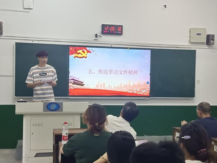 最后,学生党员高旭传达了中共中央办公厅近日印发的《中国共产党不合格党员组织处理办法》文件精神。他提出,各党小组要加强学习培训,通过专题学习、交流研讨等方式,使广大党员准确领会《办法》精神,全面掌握《办法》内容,严格执行《办法》规定。